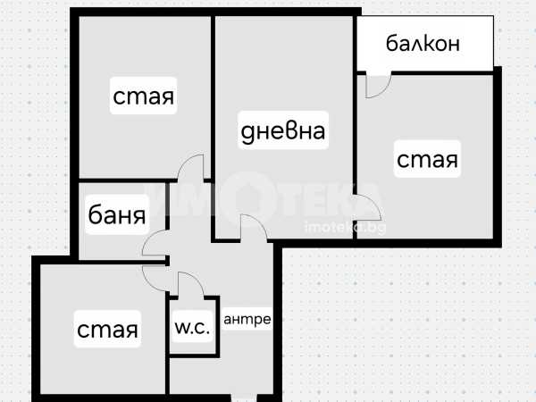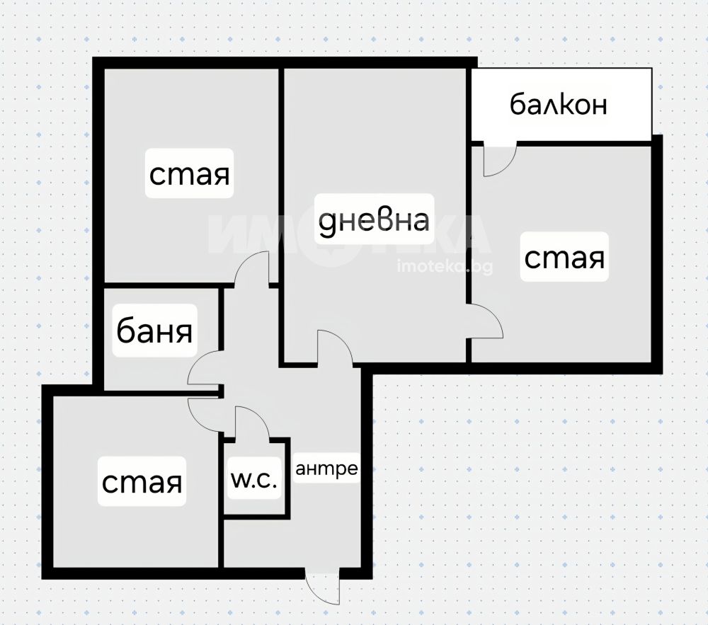 Разпределение: Дневна с кухня и трапезария, три спални, едната от които изцяло обзаведена, баня с тоалетна и отделна тоалетна, антре, мокро помещение и тераса към родителската спалня.