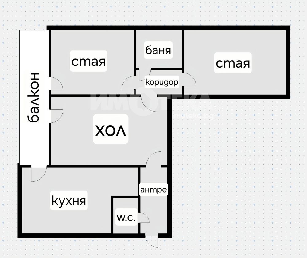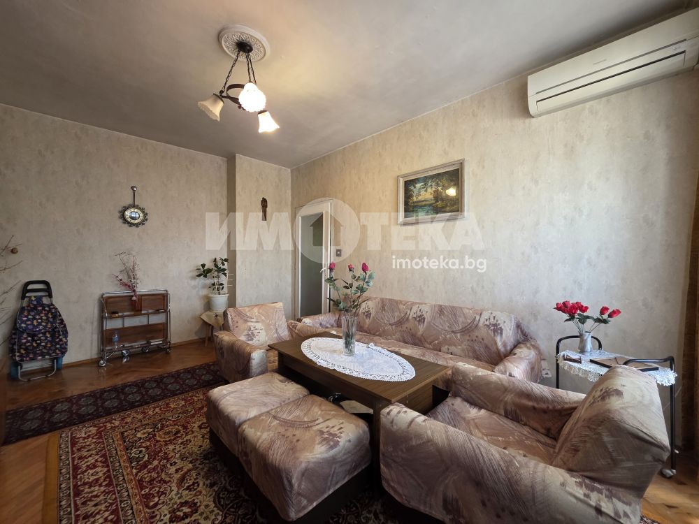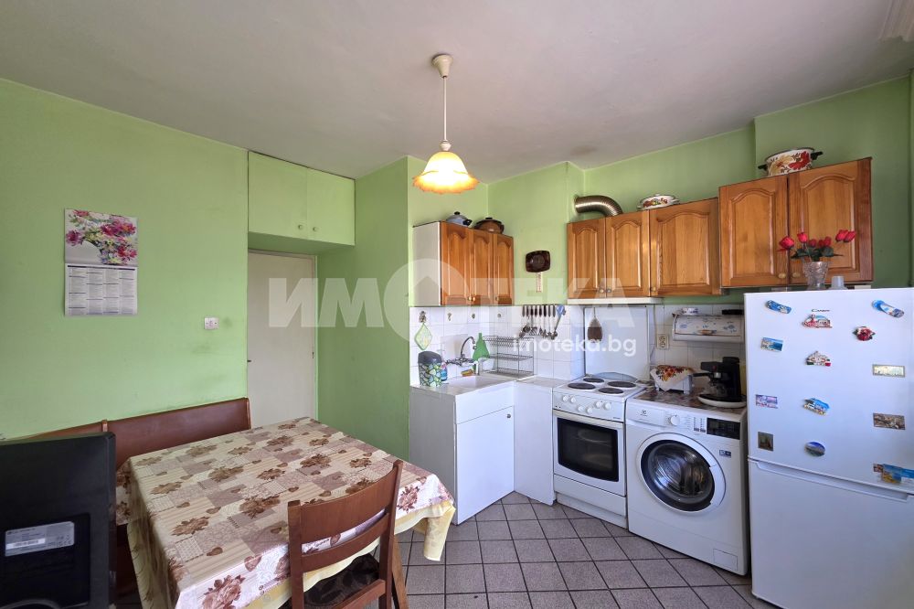 Тристаен апартамент състоящ се от две стаи дневна, отделна кухня и трапезария, баня с тоалетна, отделна тоалетна, голяма тераса възлизащ на 85 кв.м. мазе и таван.