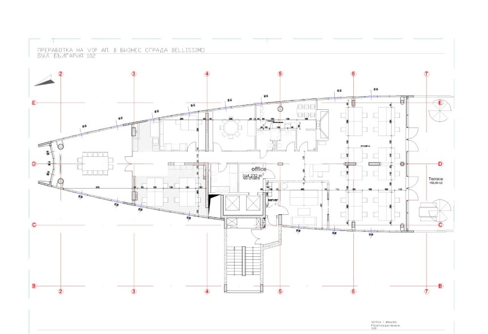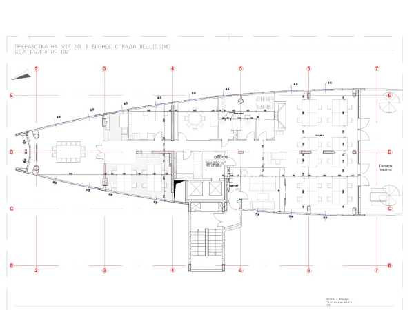 Офис в сградата на Бизнес център - Белисимо. Състои се от голям опен спейс помещение около 200кв.м., 3 конферентни зали, 2 кабинета и голяма тераса 100кв.м. с изглед към Витоша.