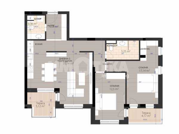 Луксозен тристаен апартамент със ЗП 71,56 кв.м.