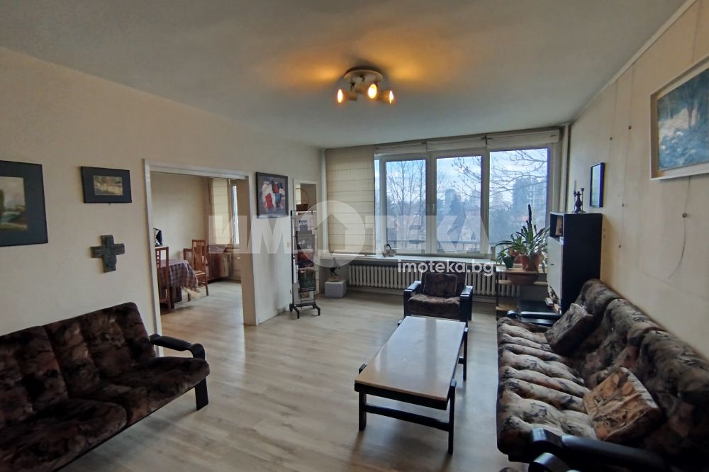 Адрес предлага тристаен апартамент в кв. Изгрев в близост до Дойче шуле, ул. Елемаг и ул. Самоков. Тристайният апартамент е със североизточно изложение. Четвърти етаж, непреходен. Състои се от входно антре, спалня със закрита тераса, голям хол, трапезария, кухненски бокс, втора по-голяма спалня със закрита тераса, коридор, който свързва всички стаи със санитарен възел, баня, голямо мокро помещение.