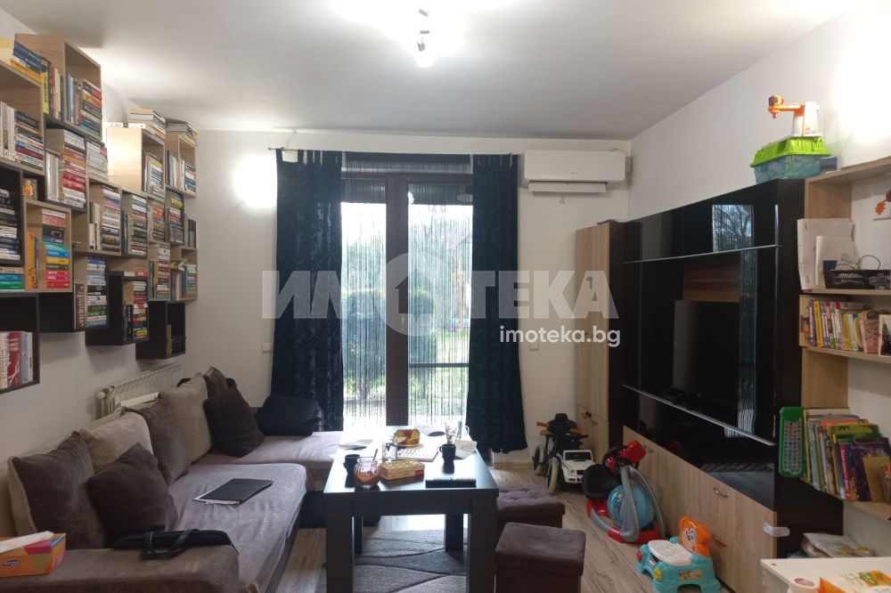 ДВУСТЕН с ДВОР ! - отлично обзаведен, югоизток, в м.Детски град, до АА училище. Жилището се състои от дневна с трапезария и голяма новооборудвана кухня, спалня, баня с тоалетна и двор-тераса, допълнително склад 8м 2 в подземното ниво. В цената са включени ПАРКИРАНЕ и 42 м2 ид.ч. от дворното пространство.Предлага тишина и спокойствие, красива природа, отлично поддържани общи части и озеленени пространства с детски кът и ротонда за общи събития, контролиран достъп с видеонаблюдение в реално време.