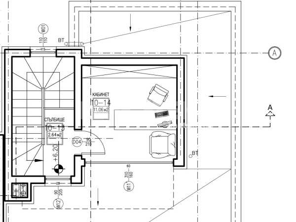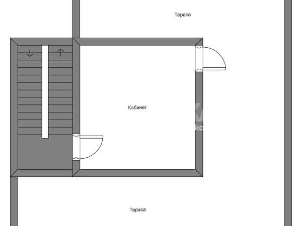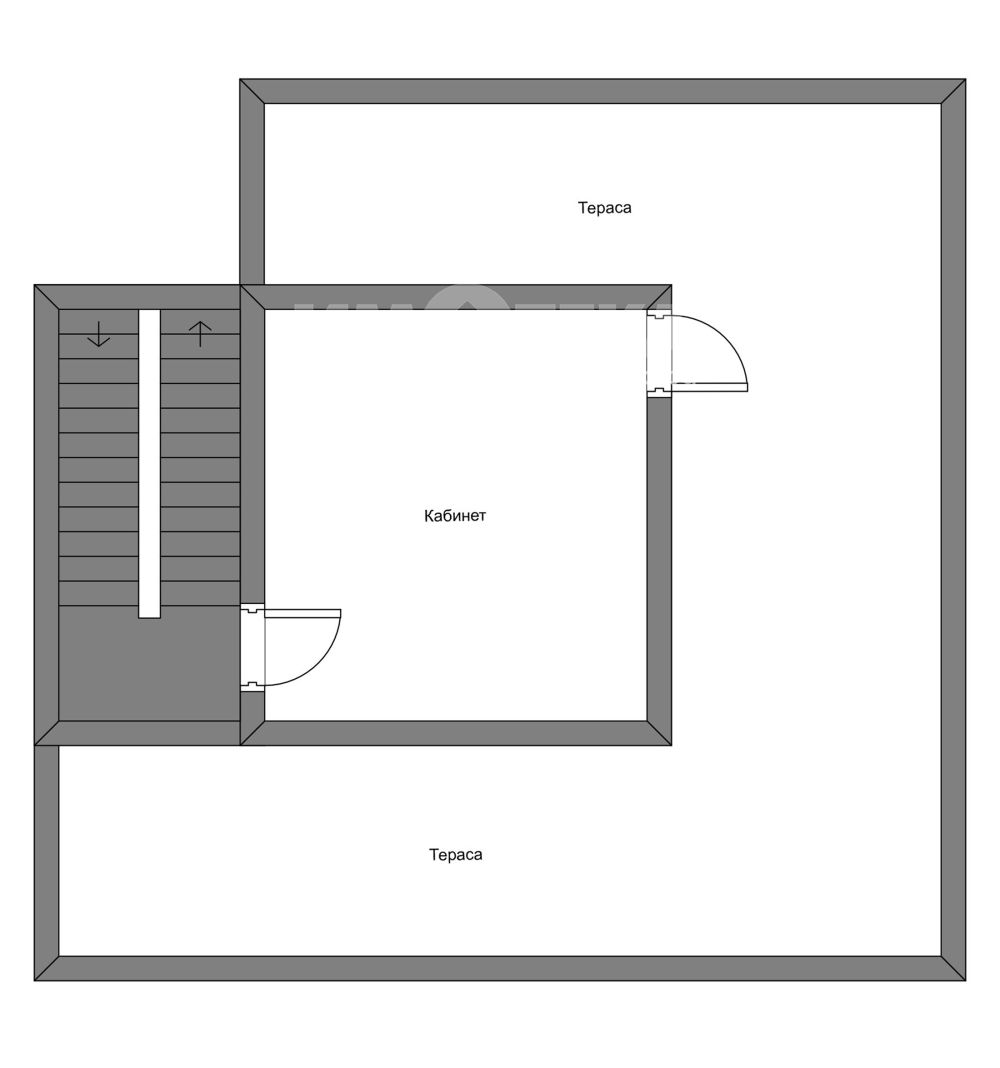 Трети етаж: кабинет/четвърта спалня и отделен достъп до плоския покрив над втория етаж (явяващ се тераса).