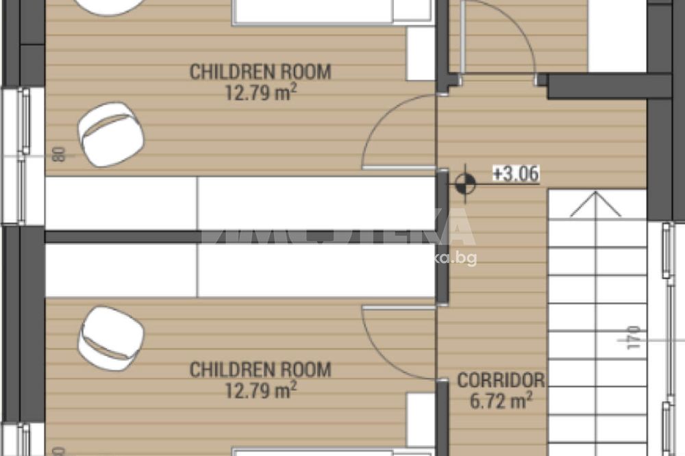 Кокетна двуетажна къща в богато озеленен комплекс. РЗП на къщата-199,44 кв.м.; застроена площ Етаж 1-99,86 кв.; застроена площ; етаж 2-99,54 кв. м. Към имота има прилежащ двор с площ- 284,67 кв. м., от които двор + веранда-181,02 кв. м. Разпределение: Дневен тракт с кухня, сервизно помещение, тоалетна, градински склад, двор + веранда, 4 спални, 2 бани с тоалетни . Изложение: Север, Юг. Две ПМ в имота.