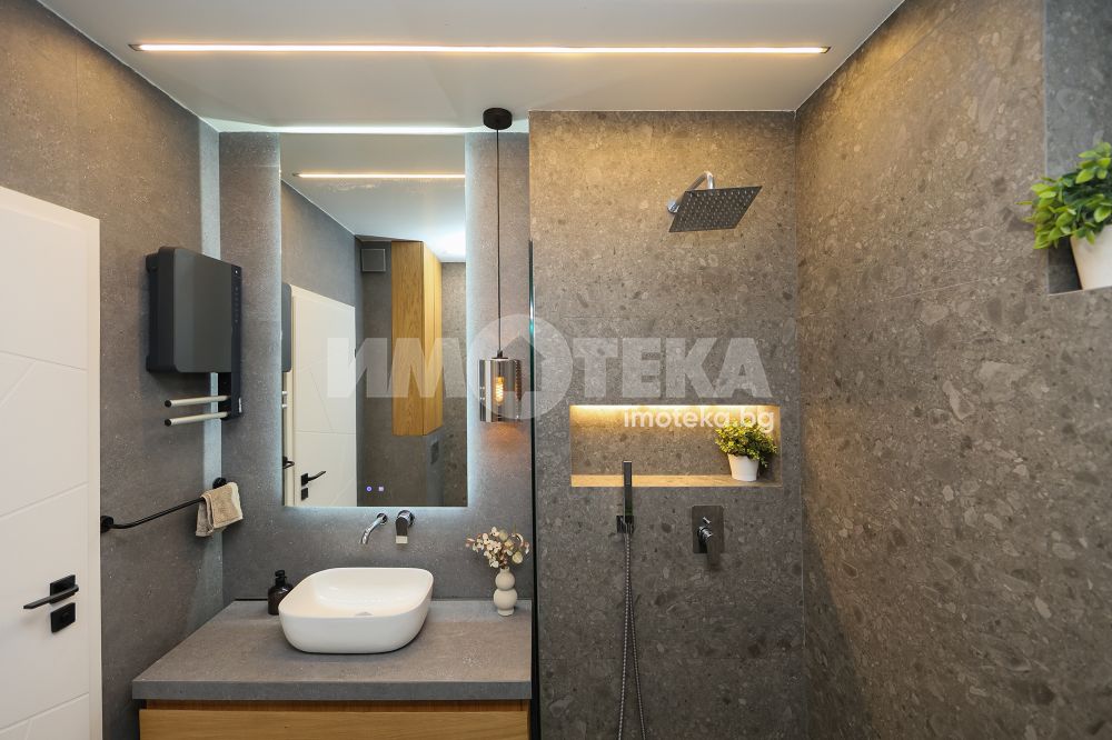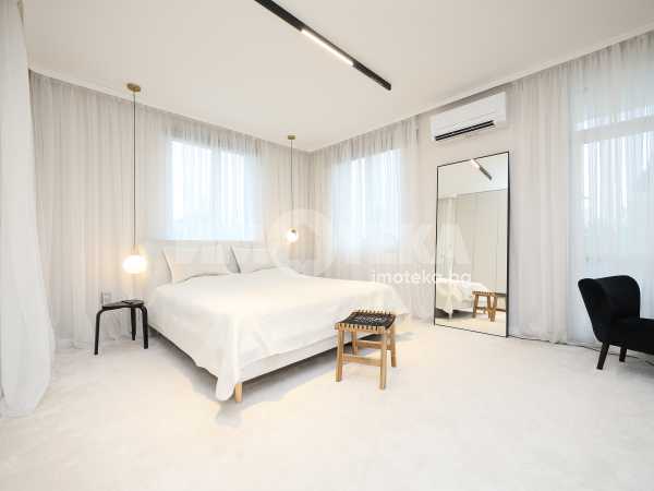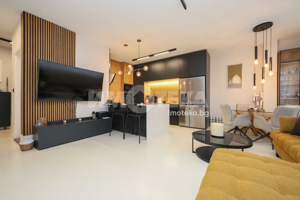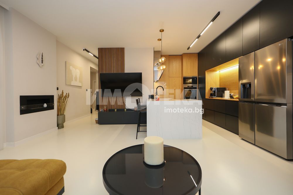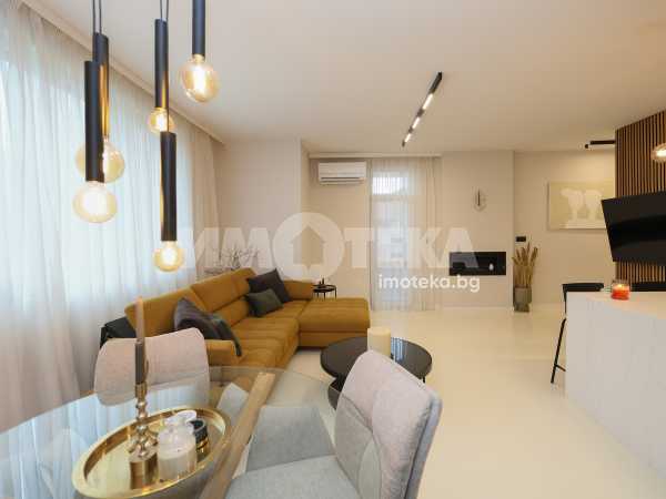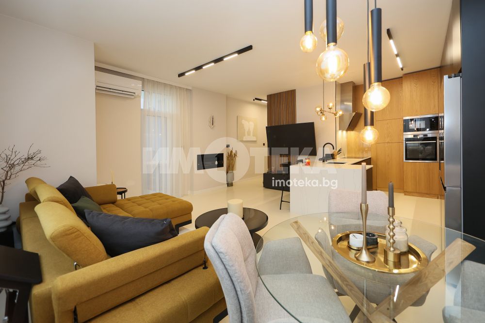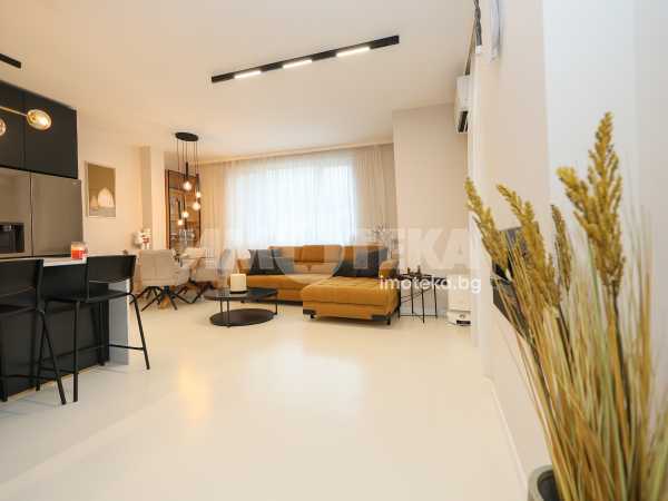 Напълно обзаведен в прекрасно състояние тристаен апартамент с площ от 125 кв.м. / 113 ЗП / на втори жилищен етаж от четири в сграда с акт 16 от 2023г., в кв. Карпузица с двор и отлично поддържани общи части, което гарантира спокойствие и уединение. Разпределението е следното: антре, коридор, голяма днева с островна кухня и камина на биоетанол, мокро помещение с тоалетна, две големи, непреходни спални, голяма баня с тоалетна и три хубави тераси. Изключително светъл, топъл и просторен апартамент. Предлага се напълно обзаведен с внимание към детайла и стилни и висококачествени мебели, готов за нанасяне, оборудван с бяла и черна техника,идеални части от УПИ, 2 подземни паркоместа на отделна цена от 25 000 всяко, отоплението е решено с висок клас климатици 'Mitsubishi' във всяко помещение, но има изградено трасе за опция на газ. Бърз достъп до градски транспорт, бул. Цар Борис III и Околовръстен път. Опция за свободно паркиране около сградата.