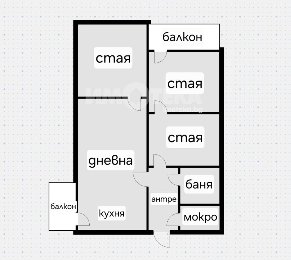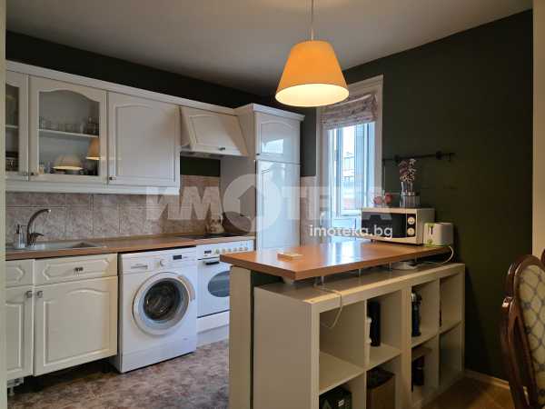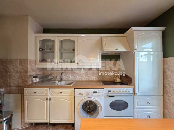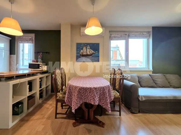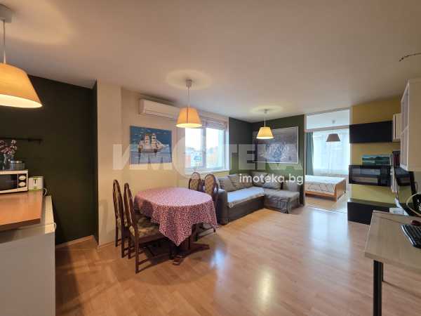 Прекрасен тристаен апартамент със застроена площ от 81 кв.м. Жилището се състои от входно антре, дневна с трапезария и кухненски бокс, две спални, баня с тоалетна, килер и две тераси.Едната от спалните е с голям дрешник, който би могъл да се ползва и като трета спалня.Жилището се предлага напълно обзаведено.