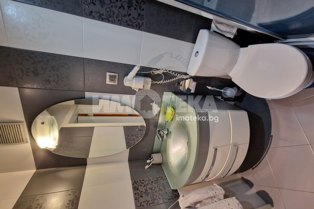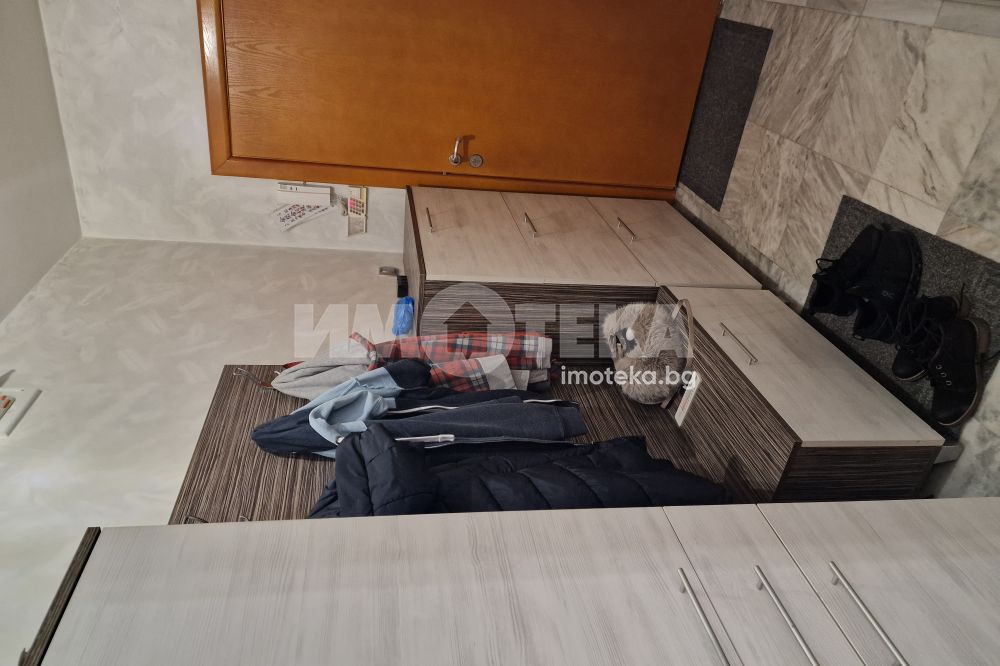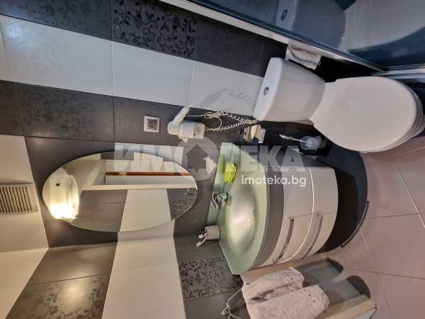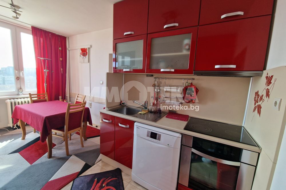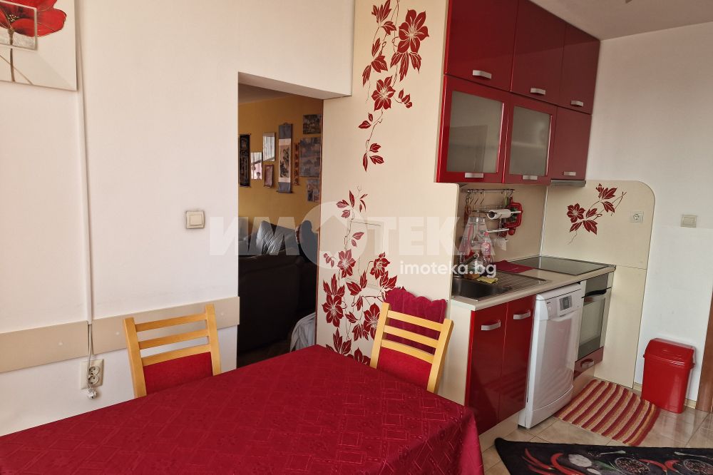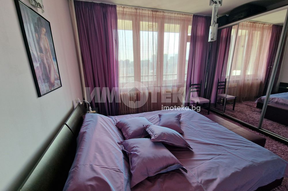 Жилището предлага приятни панорамни гледки към града и се продава напълно обзаведено, във вида от снимките, което го прави готово както за директно нанасяне, така и за инвестиция с цел отдаване под наем.Разпределението е просторно антре,хол, кухня с трапезария,две спални,баня с тоалетна,тоалетна и мокро помещение.
