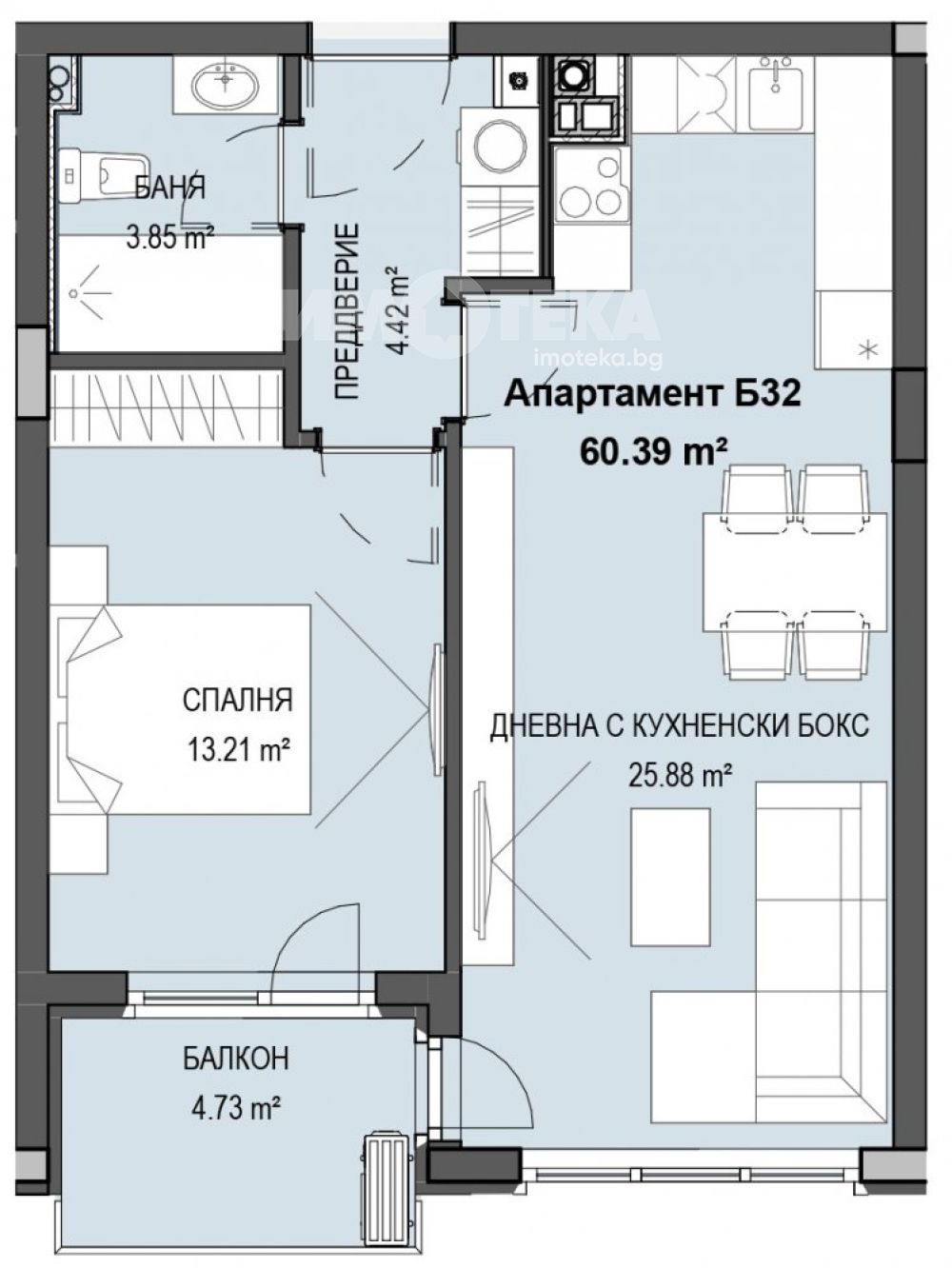 Чиста площ 60.39m2