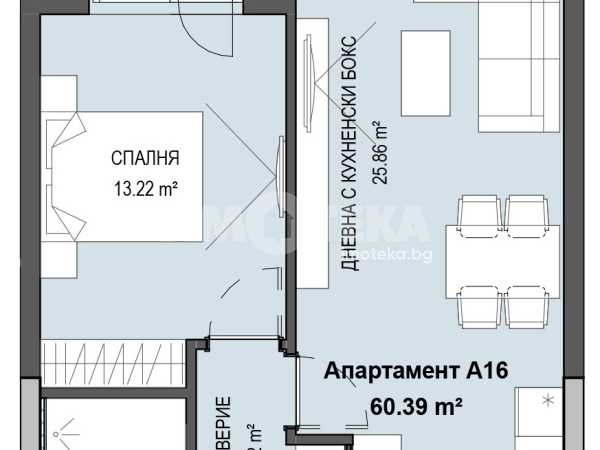 Две свободностоящи жилищни сгради с общо 76 апартамента – от двустайни до четиристайни, включително партерни жилища със собствени дворчета и апартаменти с уникални покривни тераси. Парцелът е 2863 кв.м с озеленени пространства, места за отдих и детска площадка. Сградите са със стартирало строителство, концепция за затворен комплекс, но без такса поддръжка.