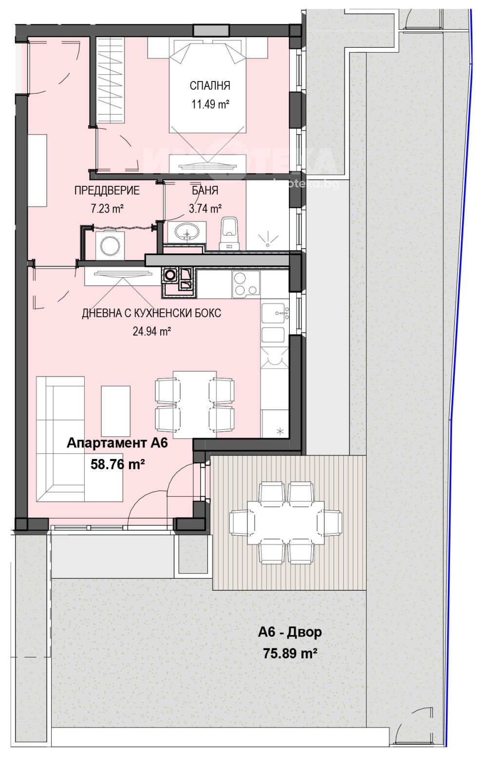 Две свободностоящи жилищни сгради с общо 76 апартамента – от двустайни до четиристайни, включително партерни жилища със собствени дворчета и апартаменти с уникални покривни тераси. Парцелът е 2863 кв.м с озеленени пространства, места за отдих и детска площадка. Сградите са със стартирало строителство, концепция за затворен комплекс, но без такса поддръжка.