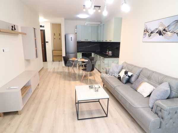 Двустаен апартамент в нова сграда с разрешение за ползване от м. декември 2024г. Разпределение - входно антре с портманто и мокро помещение, дневна, трапезария и кухненски бокс, спалня, баня и тоалетна, тераса с излаз и от двете стаи. Оборудван с хладилник, печка, съдомиялна, климатик, пералня със сушилня. Включен гараж в сутерена на сградата.