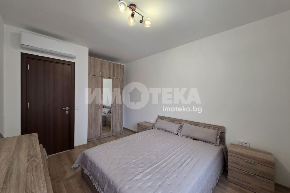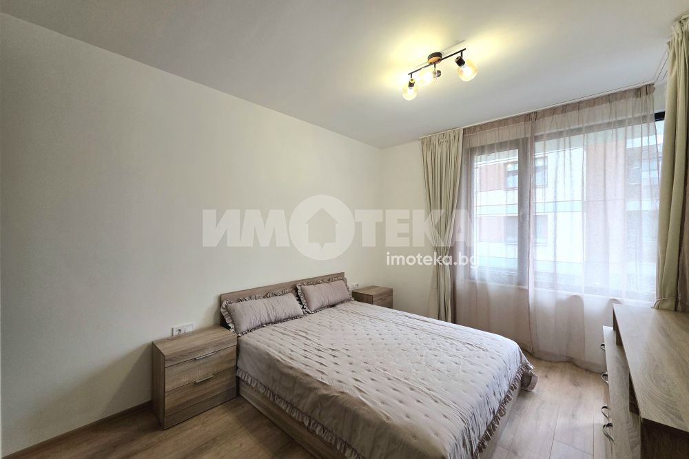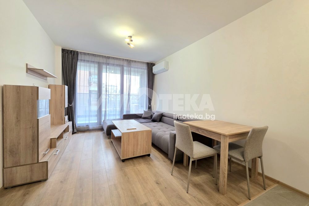 Светъл и уютен двустаен апартамент с площ 62 кв.м. на етаж 2, състоящ се от коридор, дневна с кухненски бокс, спалня, баня с тоалетна и балкон. Жилището е след основен ремонт с ново обзавеждане и електроуреди. Отоплението е на ток с климатици. Към апартамента има включено външно паркомясто в наемната цена, възможно е наемането на още едно паркомясто. Не се допускат домашни любимци.