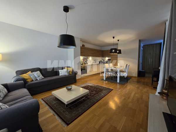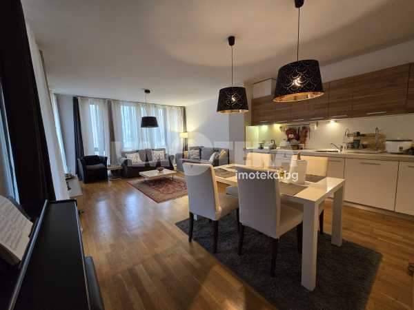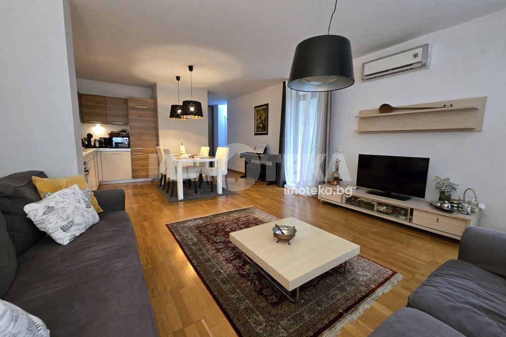Завършен и обзаведен тристаен апартамент. Състои се от: входно антре, просторна дневна с трапезария и кухненски бокс, две спални, баня с тоалетна, отделна тоалетна и тераса. Към жилището има прилежащо мазе. Продава се и подземно паркомясто на цена 40000 евро.