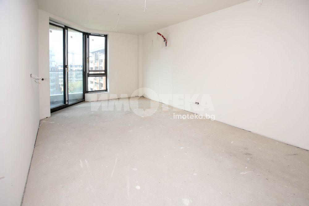 Тристаен апартамент със следното разпределение: дневна с кухня, две спални,две бани с тоалетна,гардеробна, мокро помещение,тераса с гледка към Витоша. Възможност за закупуване на подземно паркомясто.