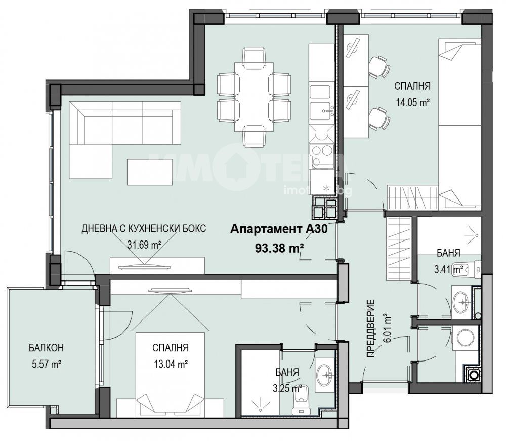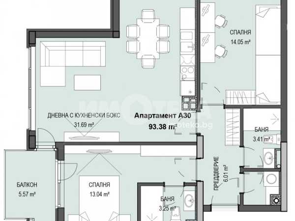 Чиста площ 93.38m2