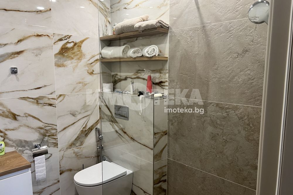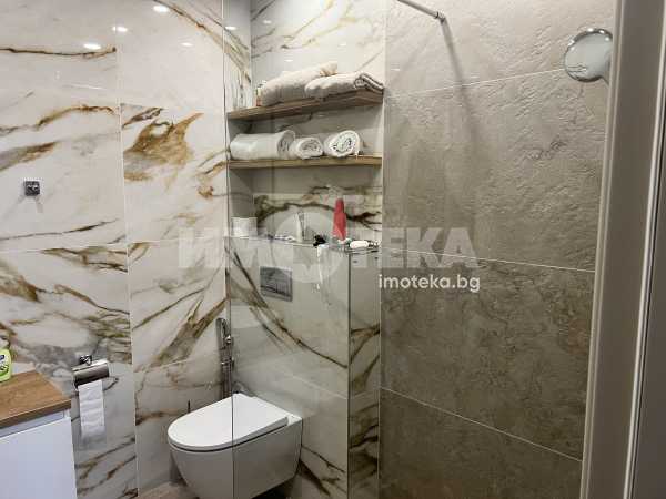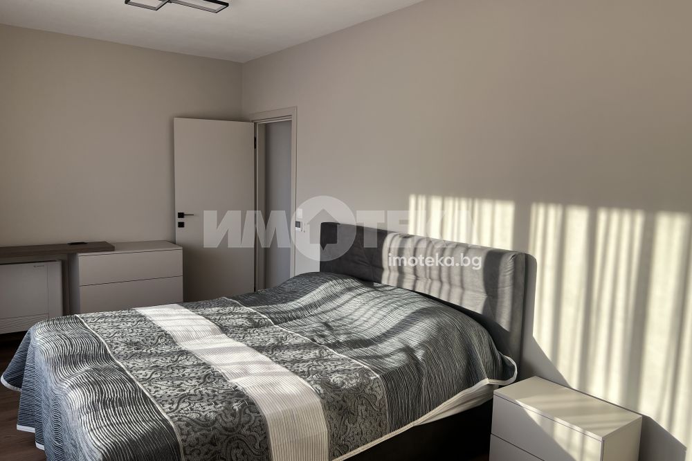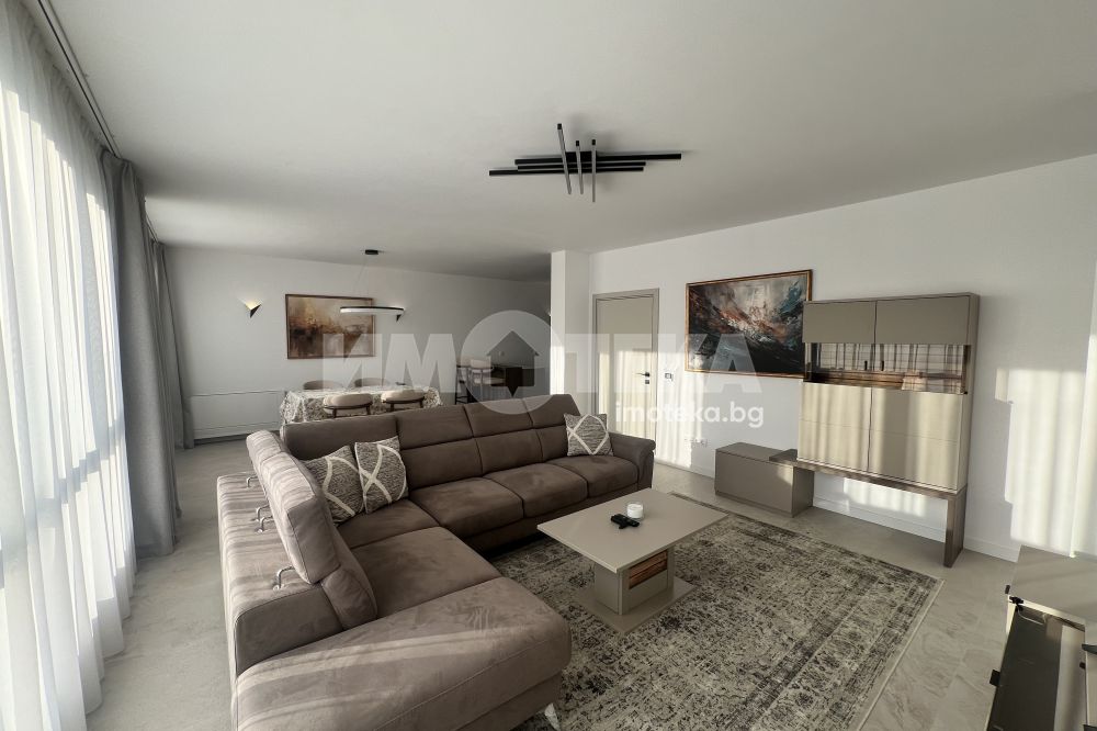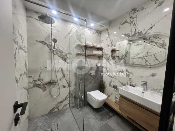 Чисто нов, тристаен напълно обазаведен апартамент, състоящ се от хол с бокс, две спални, едната от които е със собствена баня и прилежащо перално помещение. Отделно баня с тоалетна и самостоятелна тоалетна.