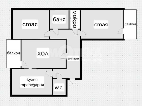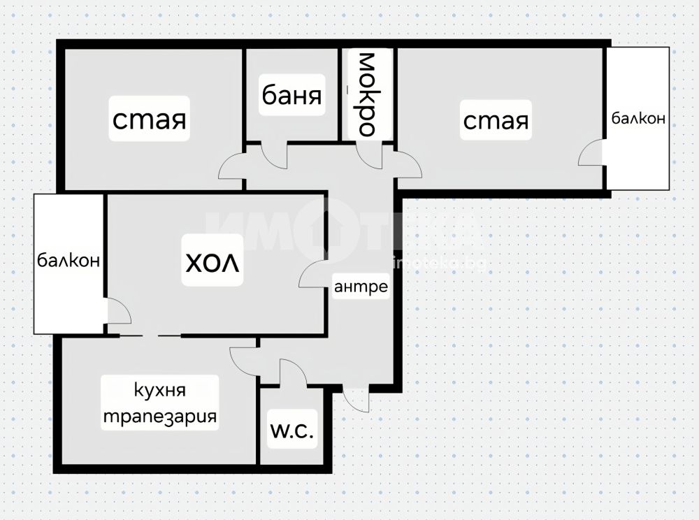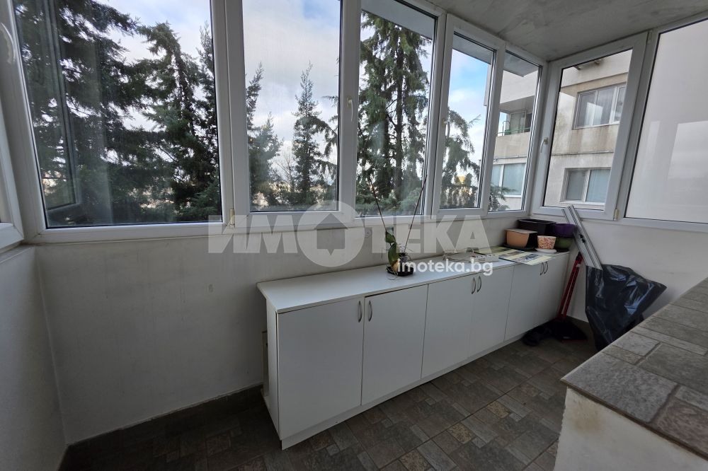 Просторен тристаен апартамент с четири отделни помещения. Имота се състои от хол, кухня, две спални, баня с тоалетна, отделна тоалетна, мокро помещение и две тераси. Изложението е изток/запад, което го прави изключително топъл и светъл. Жилището е разгърнато на 112 кв.м. чиста площ.