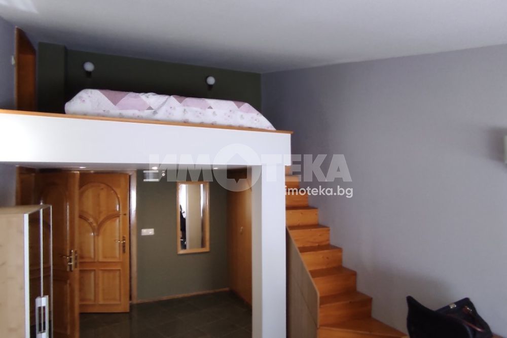 Агенция Имотека, предлага кокетно и слънчево жилище под наем, в квартал Левски Г. Ателие с площ 42 кв.м. с интересно архитектурно решение - разположено на две нива - на първо ниво - дневна с кухненски бокс и баня с тоалетна, второ ниво - вътрешно емпоре, където е обзаведен спален кът.