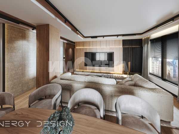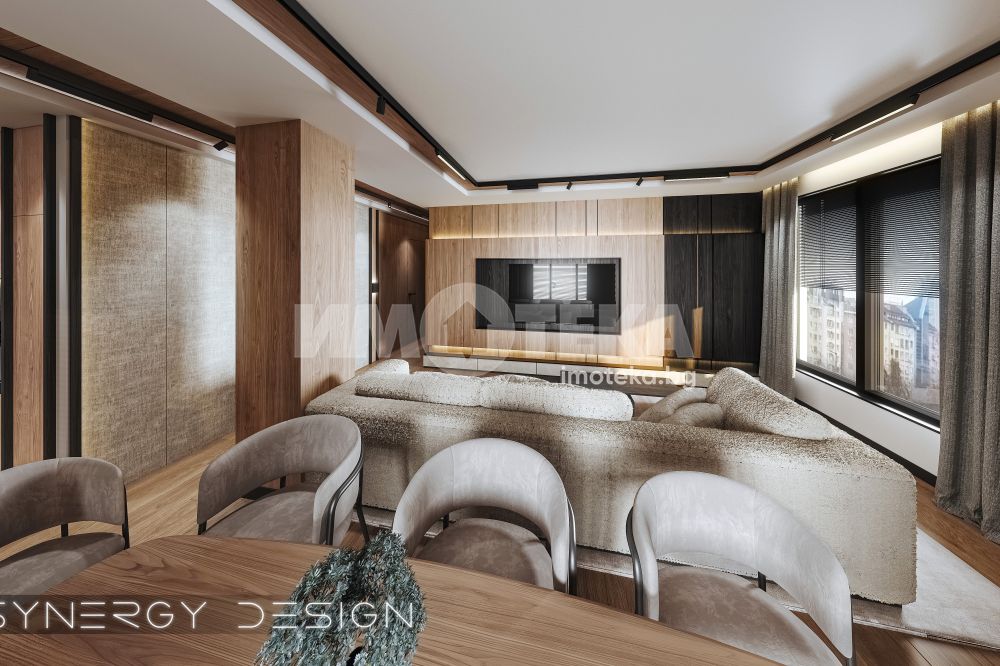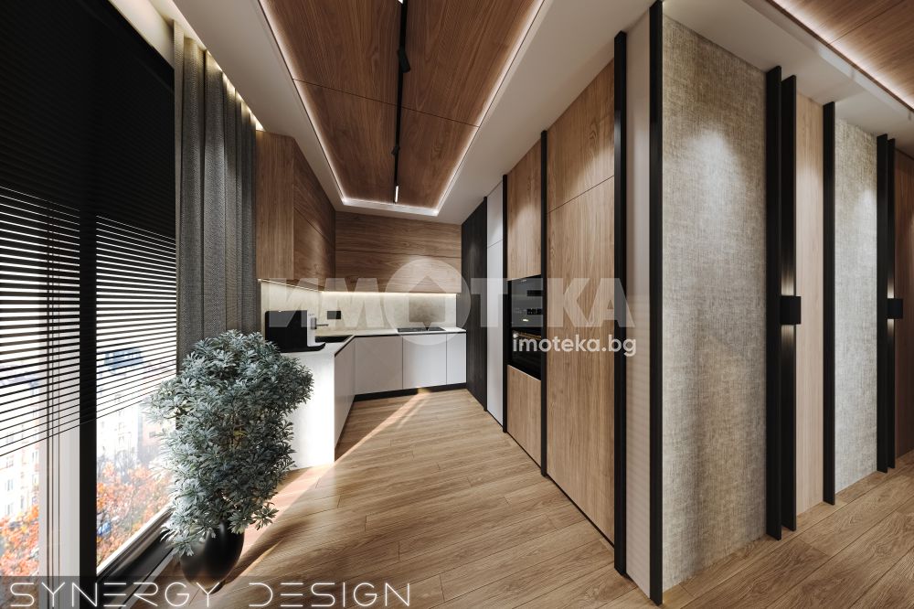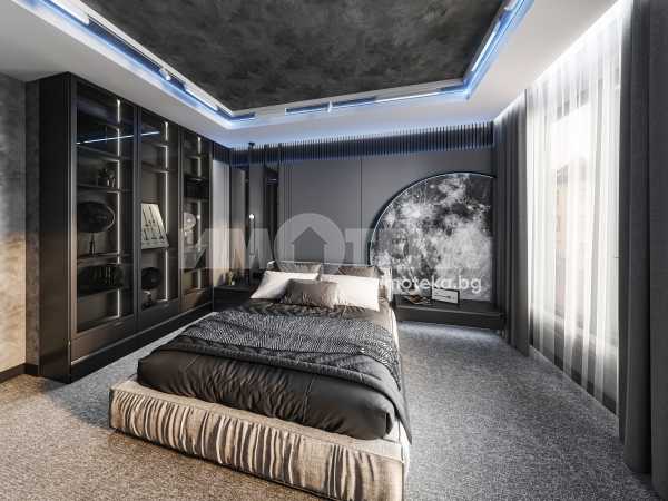 Отличен самостоятелен петхаус на последен 9-ти етаж. Достъп директно през асансьора. Разположен на цялата плоча. Апартаментът разполога с 360° тераса която, разкрива гледки във всички посоки. Функционално разпределение - антре, две детски спални, баня с WC, родителска спалня със собствена баня с WC, голяма дневна с кухненски бокс и 360° тераса.