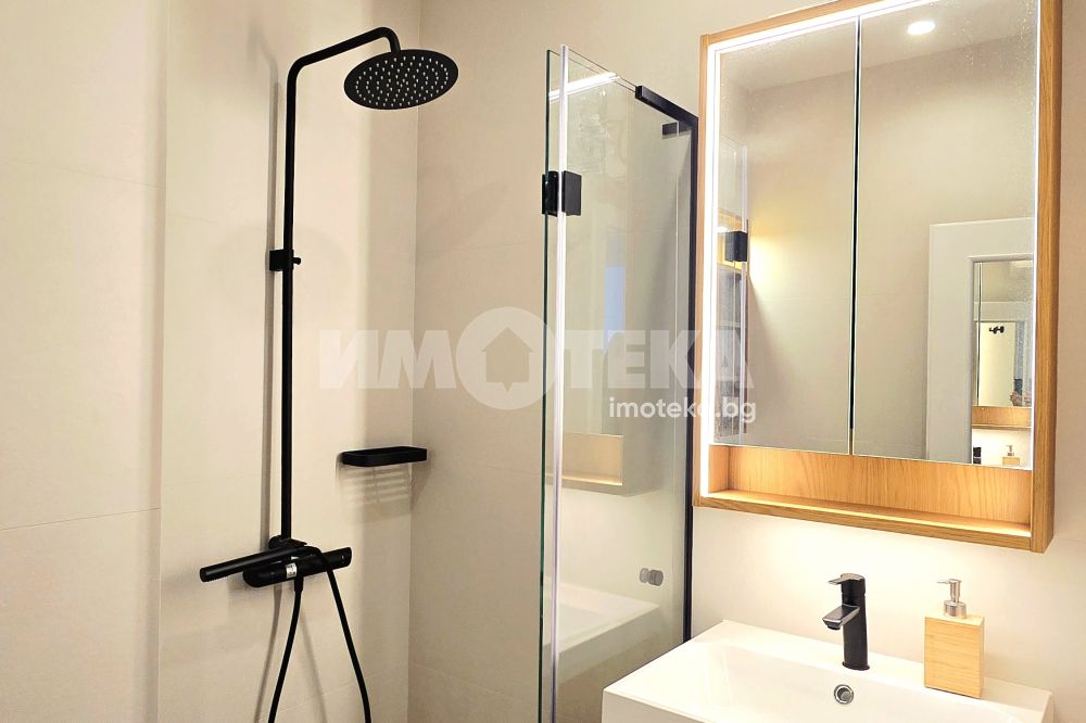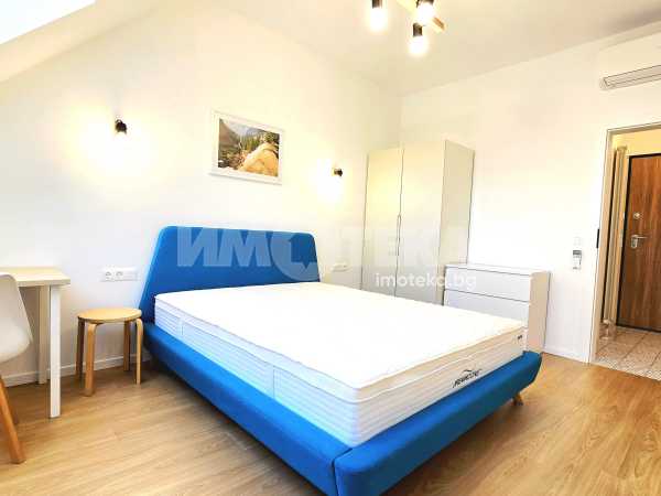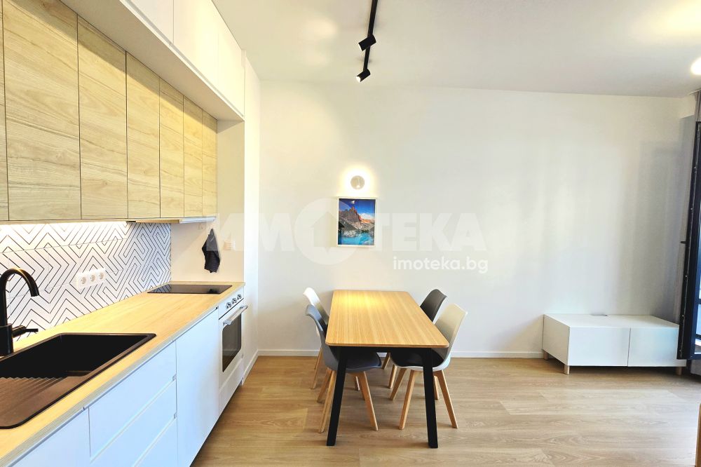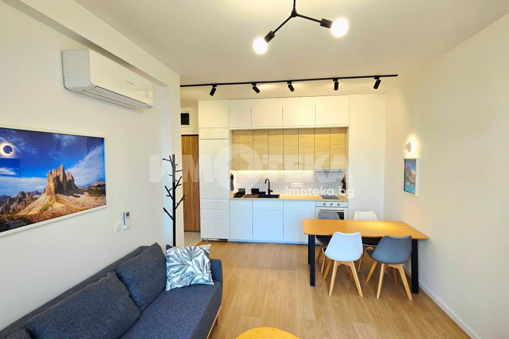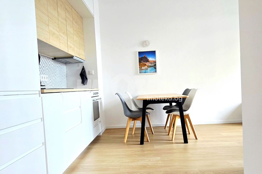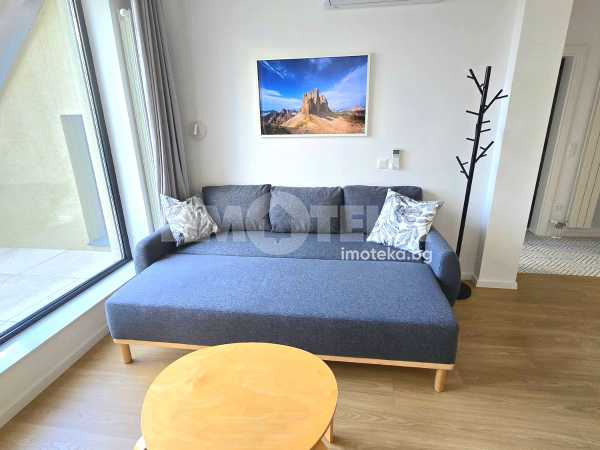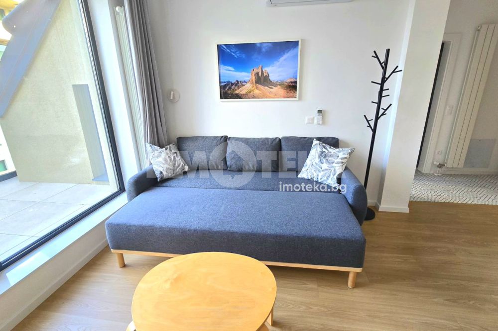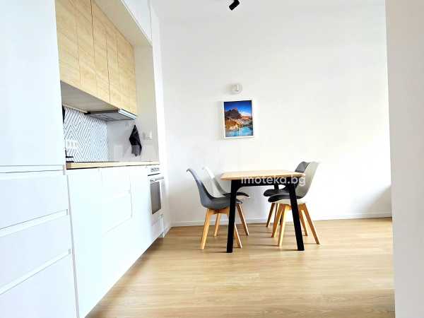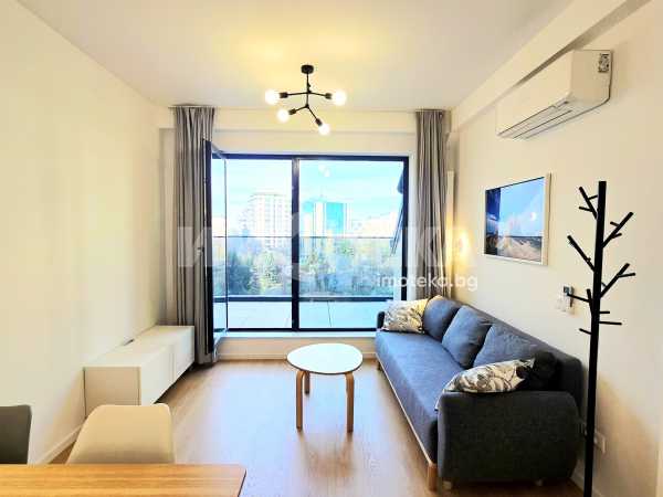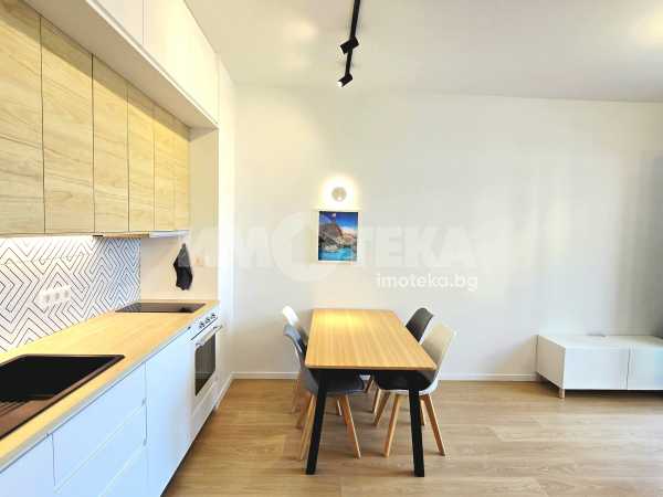 Двустаен апартамент в кв."Лозенец". Напълно завършен и оборудван. Състои се от: входно антре, дневна с трапезария и кухня, спалня, баня с тоалетна и тераса с гледка към зелените площи. Кухня оборудвана с вградени електроуреди: фурна, индукционен котлон, аспиратор, пералня със сушилня, миялна машина, хладилник. Баня с бойлер с WiFi връзка