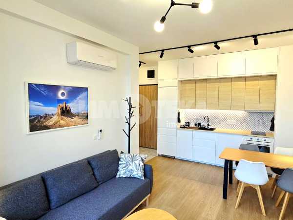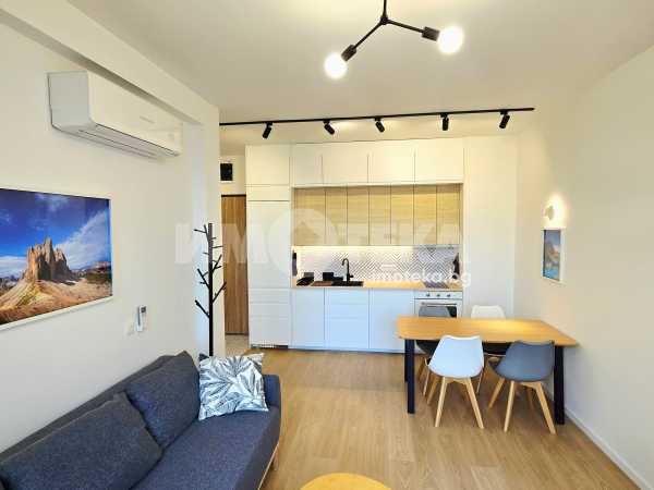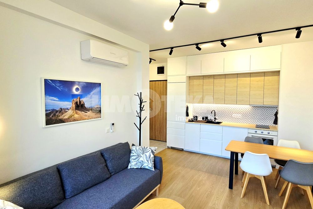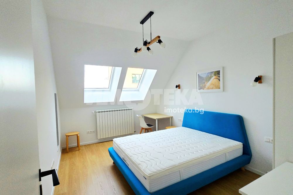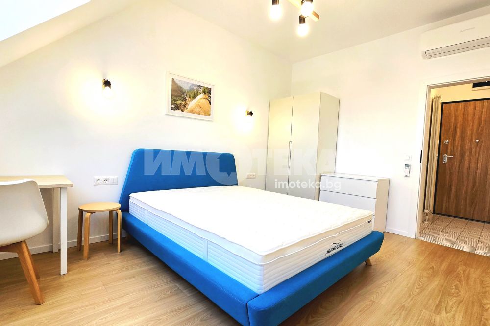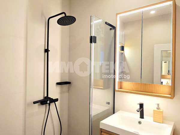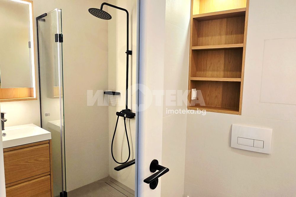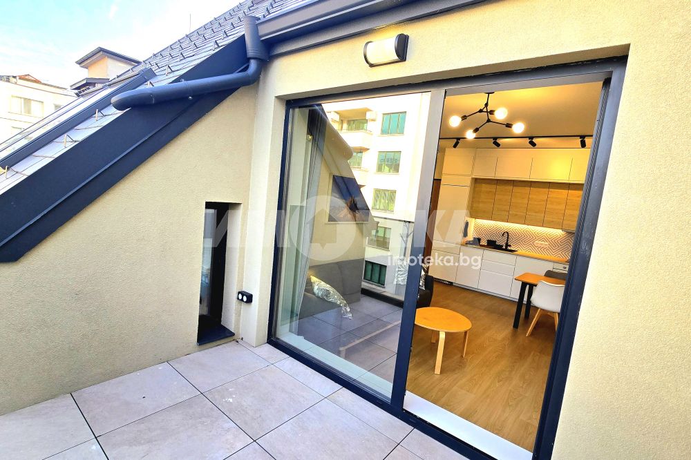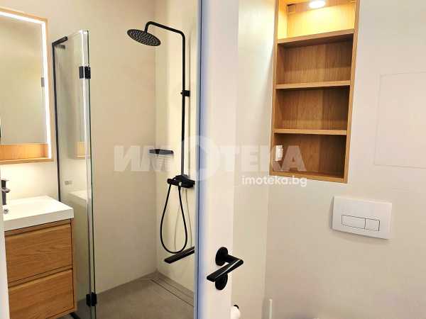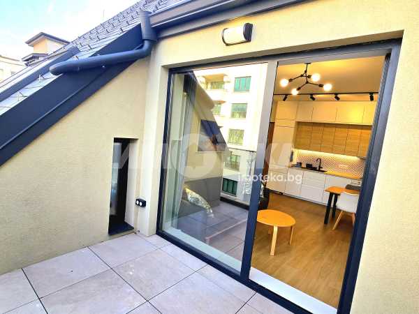 Двустаен апартамент в кв."Лозенец". Напълно завършен и оборудван. Състои се от: входно антре, дневна с трапезария и кухня, спалня, баня с тоалетна и тераса с гледка към зелените площи. Кухня оборудвана с вградени електроуреди: фурна, индукционен котлон, аспиратор, пералня със сушилня, миялна машина, хладилник. Баня с бойлер с WiFi връзка