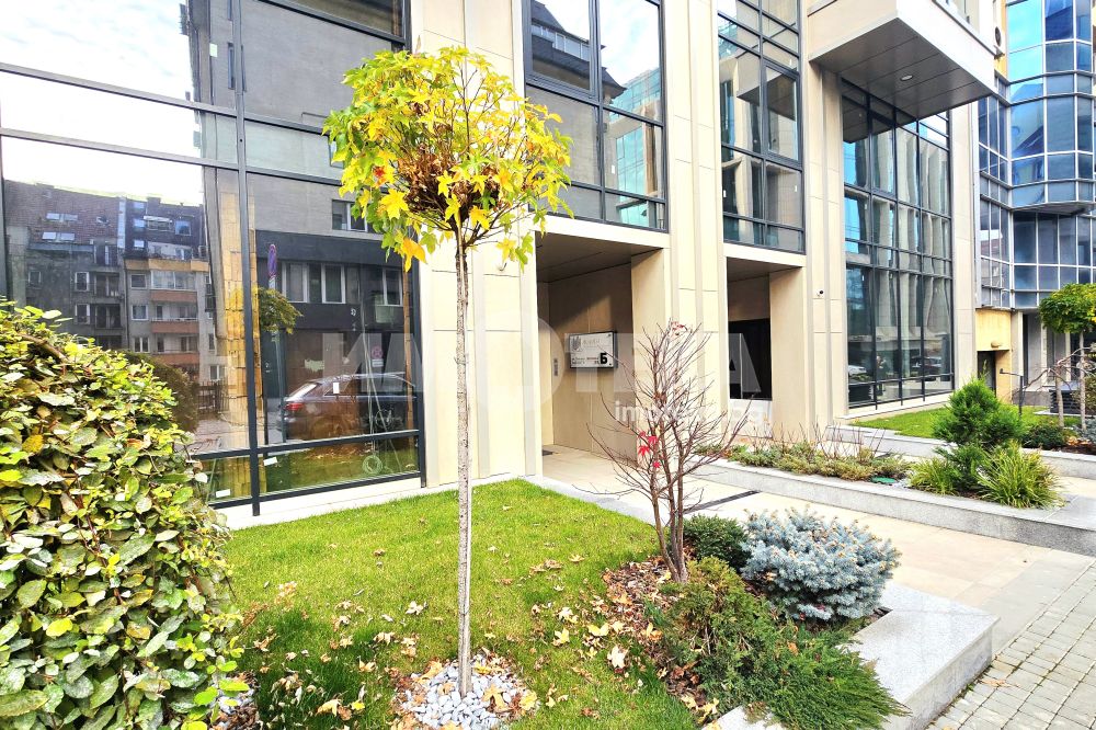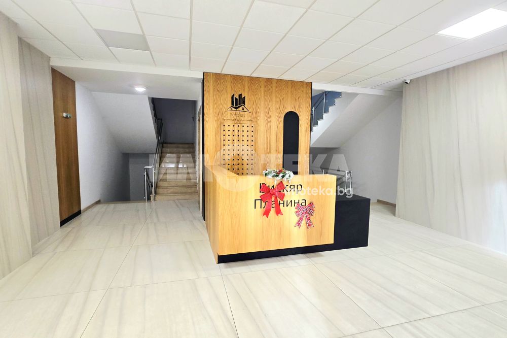 Сградата е с фасада от естествен камък, висок клас общи части, просторното фоайе с рецепция и охрана;