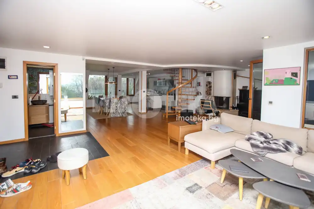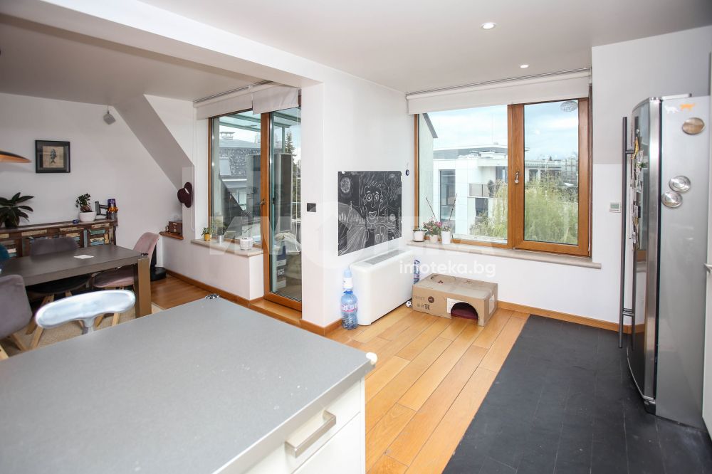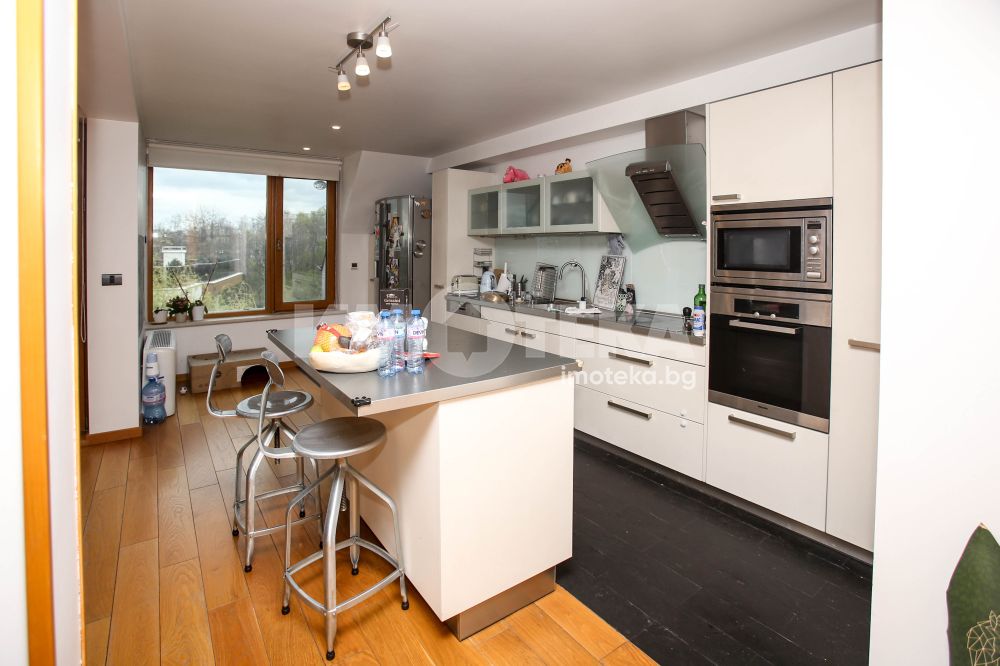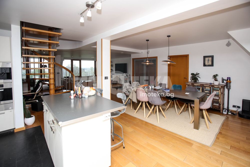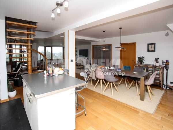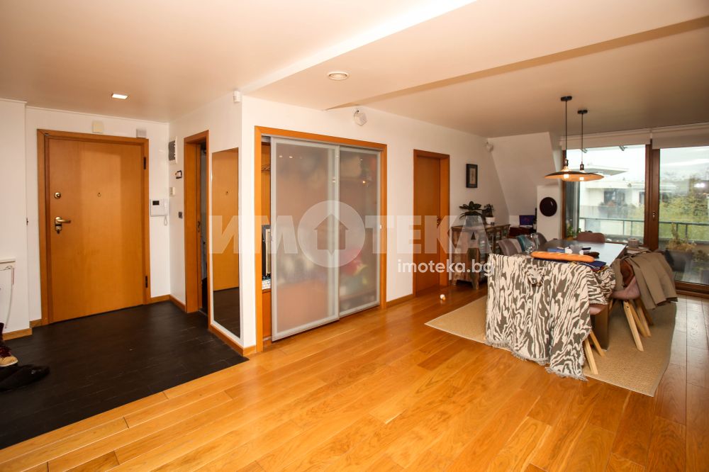 Многостаен апартамент, тип-мезонет в Лозенец, част от жилищна група Южен Парк, състоящ се от две нива с дневна, кухня, кабинет, две тераси, заедно с три спални, две бани, мокро помещение, гардеробна. Прилежащ голям гараж с площ 32,70 кв/м.