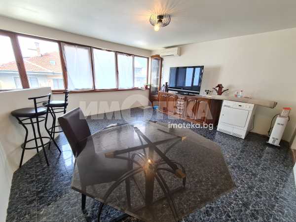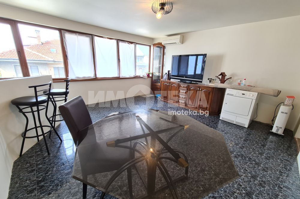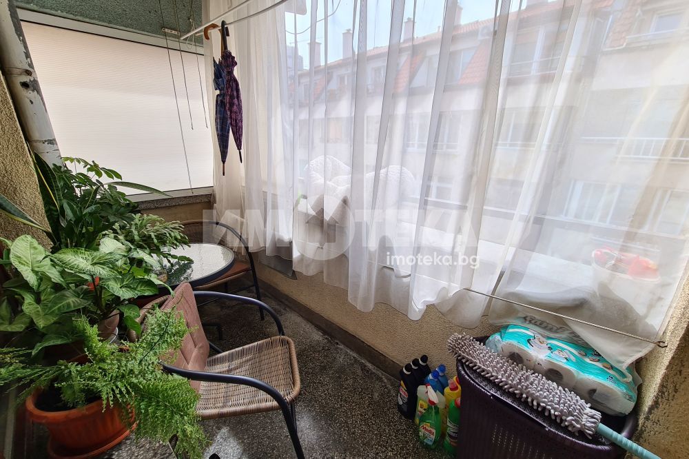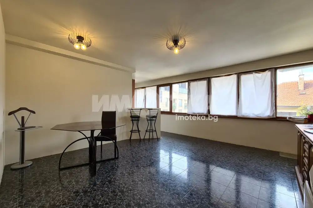 Тристаен непреходен апартамент със застроена площ от 78 кв.м. Разполага с хол с кухненски бокс от около 25 кв.м. и две неголеми спални, от които се излиза на балкон. Разположен е на висок етаж. На същия етаж се продава и огледален тристаен апартамент от 75 кв.м., който е частично обзаведен и със статут на ателие на цена от 249000 евро.