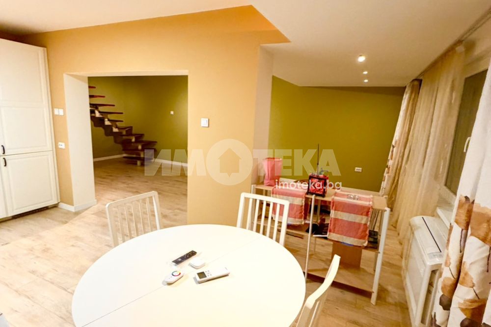 Мезонет в Лозенец, състоящ се от: Първо ниво: столова, дневна, кухненски бокс, тоалетна, антре. Второ ниво: две спални, баня, антре, голям балкон с излаз от двете спални. Към апартамента има прилежащи таван с площ от 2,87 кв. м. и мазе с площ от 9,55 кв. м. Жилището е в перфектно състояние с високоефективни уреди от най-висок енергиен клас. Консултант: Стоян Филатов 0879020256