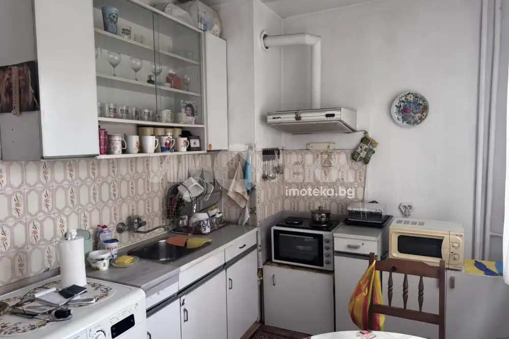 Двустаен апартамен с три отделни помещения. Имотът е с площ 60,47кв.м., в които са разположени хол, кухня, спалня, коридор и две тераси. Дограма - ПВЦ. Отопление - ТЕЦ. Състояние - за ремонт.