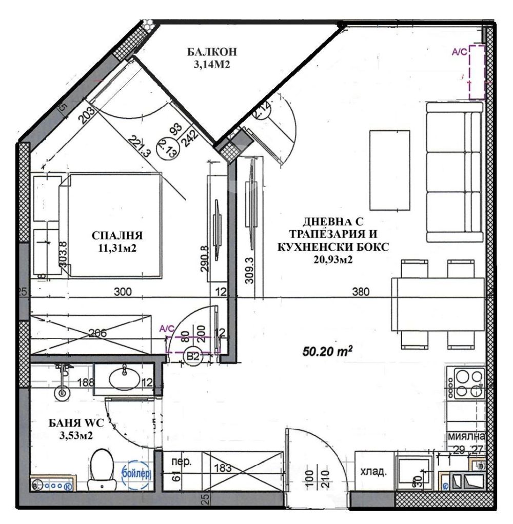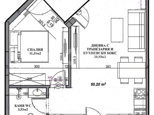 Двустаен апартамент в новострояща се сграда със собствен двор в Люлин 2. Апартаментът е разположен на етаж три от седем с разпределение: дневна -трапезария, кухненски бокс -20,93м2, спалня-11,31м2, баня с WC-3,53m2 и балкон-3,14м2. Към апартамента има и подземно паркомясто със складово помещение. Отлични транспортни връзки, изградена инфраструктура. Отоплението е предвидено на ТЕЦ.