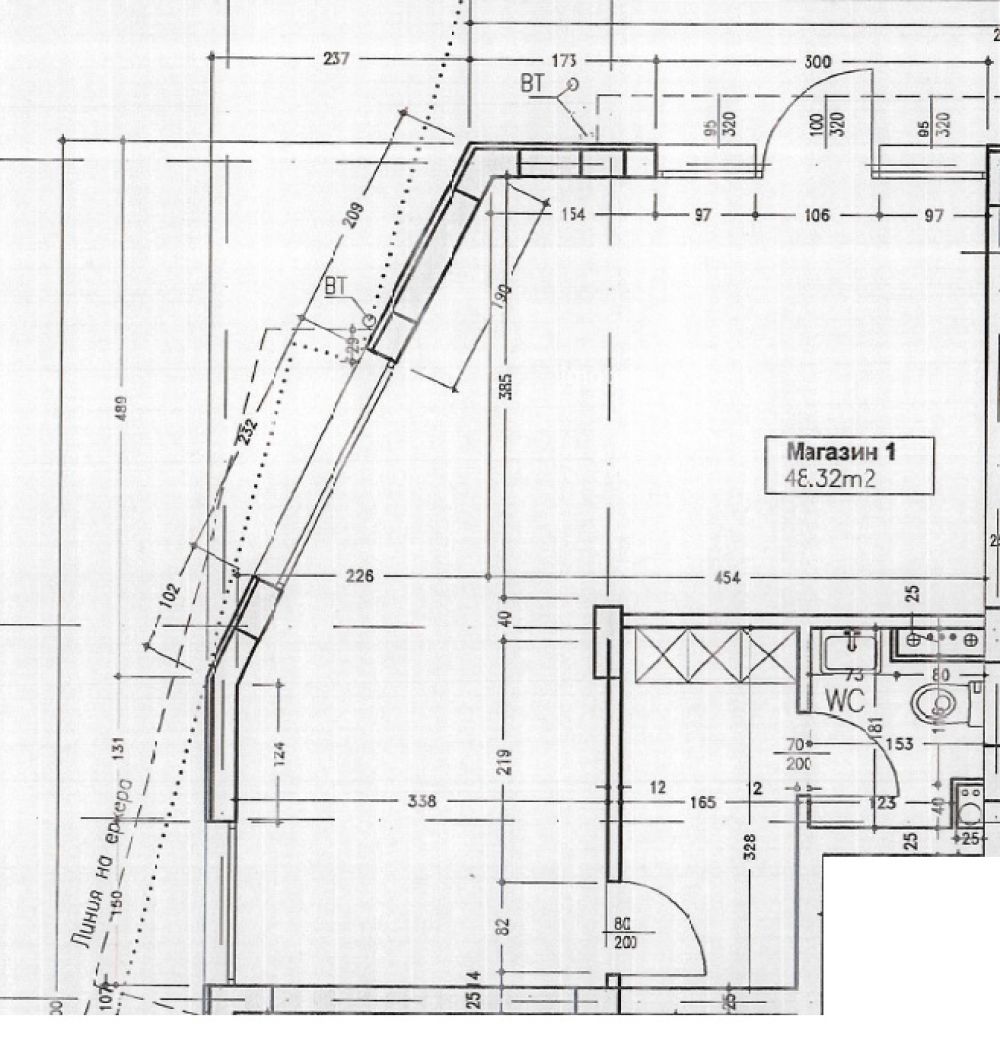 Магазин на партер със застроена площ от 48,32 кв.м. Към магазина има склад в сутерена на сградата с площ от 5,62 кв.м.