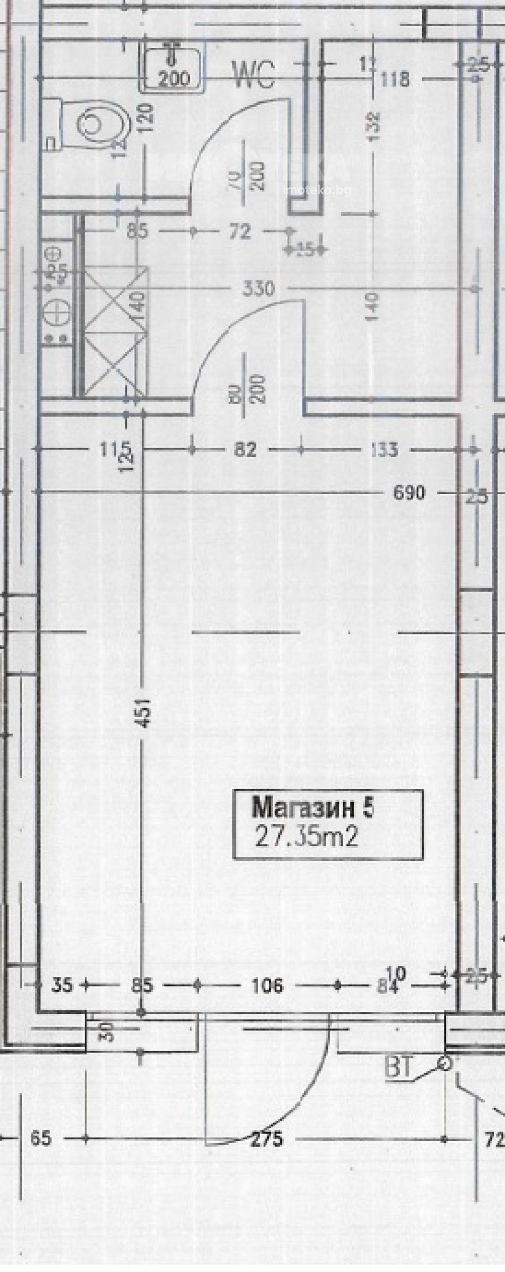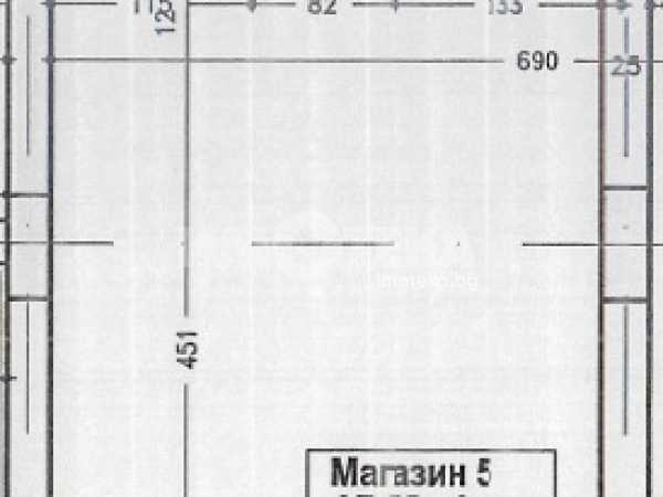 Магазин на партер със застроена площ от 27,35 кв.м., към магазина има склад в сутерена на сградата с площ от 5,20 кв.м.