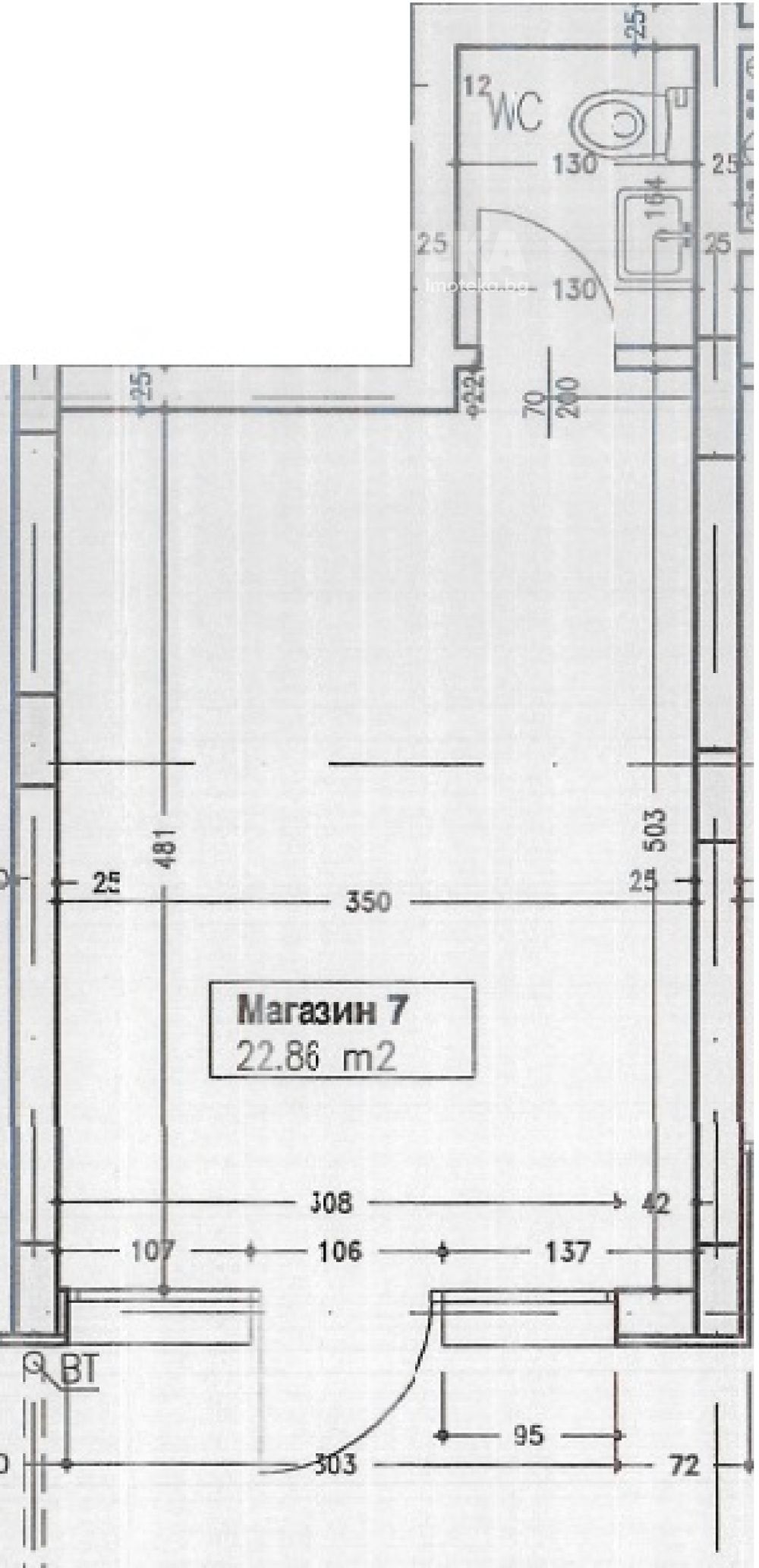 Магазин на партер със застроена площ от 22,86 кв.м.