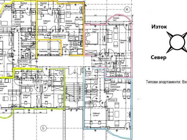 самостоятелни входове и складови помещения към тях. Подхода към сградата е