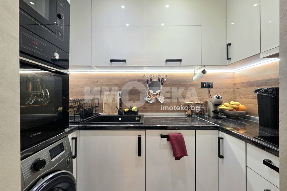 Жилището се предлага напълно обзаведено с мебели по поръчка и оборудвано с всички необходими електроуреди висок енергиен клас A+++ , както и климатици Mitsubishi, гарантиращи комфорт през всички сезони.