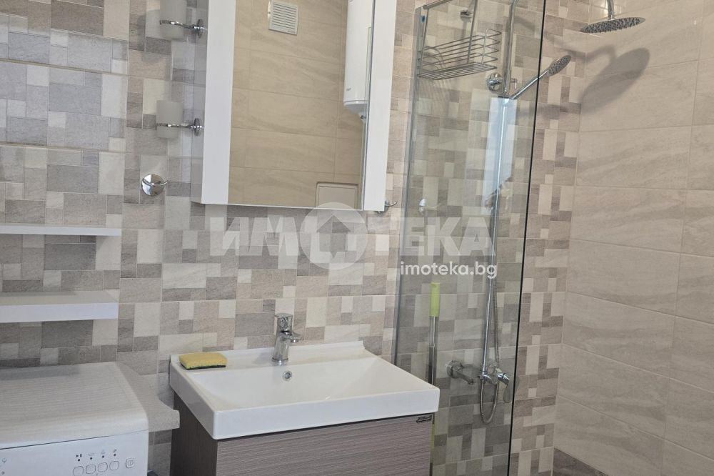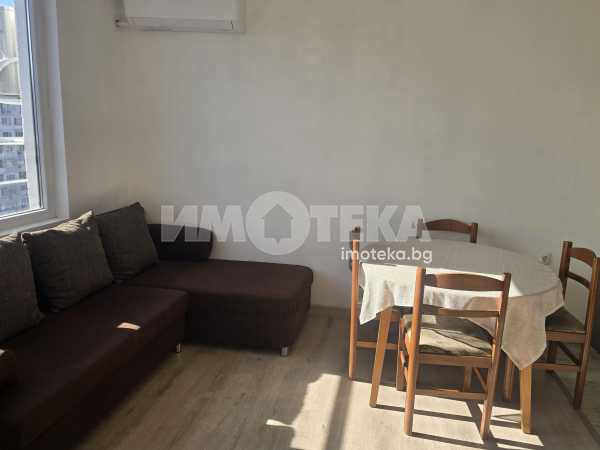 Изключително слънчево и панорамно жилище, състоящо се от дневна с кухненска част и трапезария, спалня и баня с тоалетна. Апартамента е чисто нов, обзаведен с всичко необходимо. Подходящ е за двойка или сам човек. Свободно и безпроблемно паркиране около сградата. Климатици в дневната и в спалнята, вградена фурна с котлони, хладилник, пералня, мека мебел, трапезарна маса със столове. В спалнята- гардероб, спалня с матрак, осветителни тела.