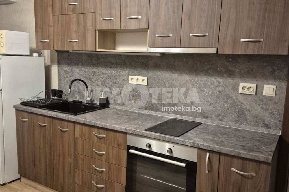 Напълно обзаведен и основно ремонтиран апартамент. Гарсониера преустроена на двустаен. Разпределение: голям широк коридор с вграден гардероб, спалня, всекидневна с кухненски бокс, баня с тоалетна. Сменена е цялата ел. инсталация, ВиК, дограма, настилки, всички врати. Отопление ТЕЦ. Изложението е изцяло юг. Имота е подходящ както за живеене така и за отдаване под наем.