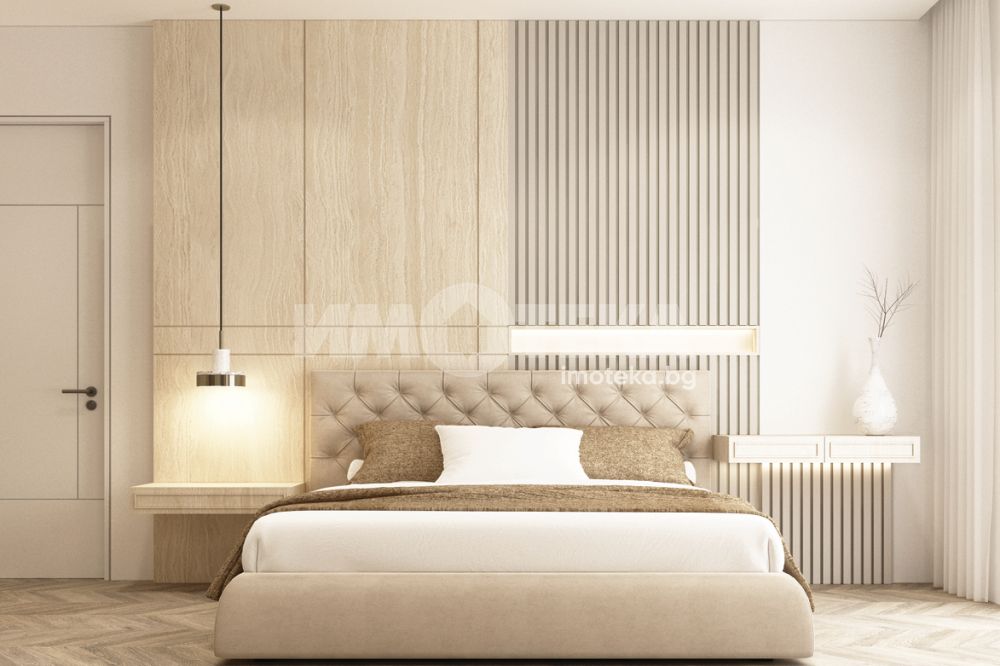 Двустаен апартамент, състоящ се от: кухня с трапезария и дневна, спалня и баня с тоалетна.