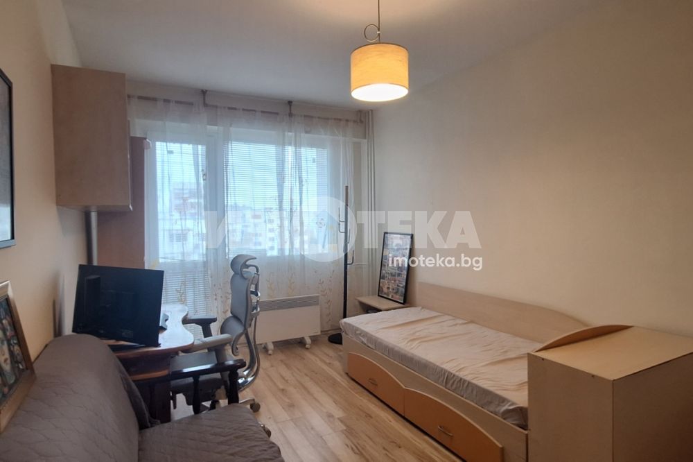 Двустаен непреходен, слъчев и топъл апартамент в жк Люлин 5. Намира се в централната част на квартала- в близост до Била, спирки на градски транспорт и др. Разпределение: просторно входно антре, дневна и спалня с балкони, напълно обзаведена кухня, баня с тоалетна. Жилището е в отлично състояние - обзаведено, ПВЦ дограма, сменени ВиК и Ел инсталации, санирано.