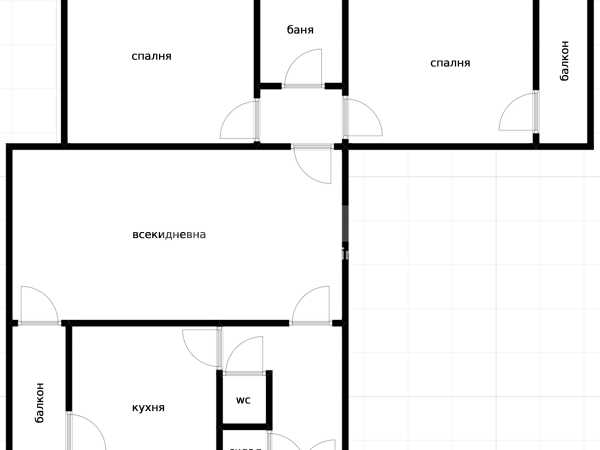 входно антре, коридор, просторна всекидневна с трапезария, кухненски бокс, три спални, мокро помещение, баня с тоалетна, отделна тоалетна и два балкона.