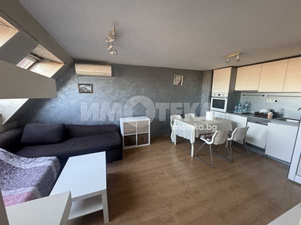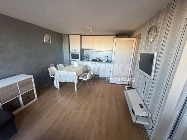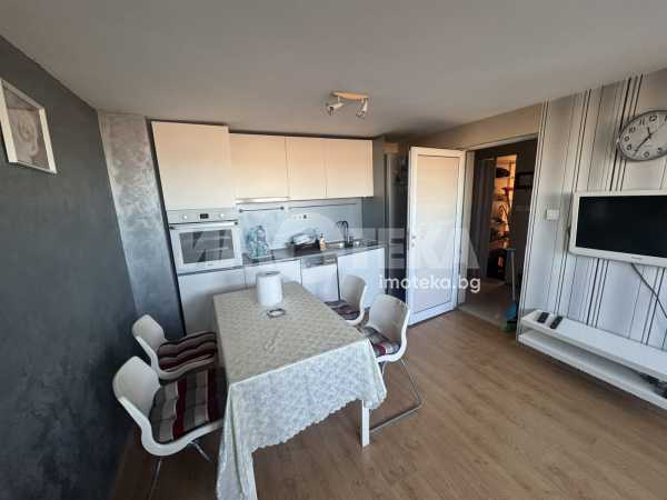 Напълно обзаведен двустаен апартамент , състоящ се от дневна с кухненски бокс(напълно оборудван с ел. уреди), спалня с тераса към нея, баня с тоалетна и складово помещение. Отоплението на жилището е с климатик. Застроена площ от 49,90 кв.м. Статутът е а ателие. Състои се от: дневна с кухненски бокс, спалня, баня с тоалетна , складово помещение и тераса.