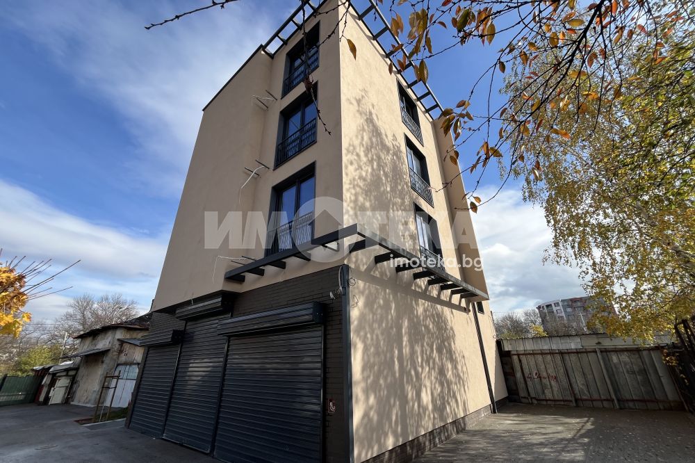 Акт 16 от 2025 ! Самостоятелна четириетажна сграда с РЗП 420 кв.м и със собствен двор 247 кв.м. Лице и подход на бул. Европа. На партера – голямо общо помещение с висок таван 3,80 м и предназначение по проект – за автосервиз с възможност за три работни места. Помещението е голямо, високо и с почти квадратна форма, със собствен санитарен възел. Може да се използва за всяко друго предназначение – магазин, офис, шоурум, зала за събития, спортна зала и пр. Останалите три етажа са със самостоятелен вход, стълбище и асансьор. На всеки етаж са разположени по два двустайни самостоятелни обекта, всеки от тях със собствени баня и кухненски бокс. Предназначение по проект – офиси. Могат да бъдат обзаведени и ползвани и като жилища. В сградата са общо 6 такива двустайни самостоятелни обекта. Всичките са завършени до ключ с представителни довършителни работи. Оборудвани бани. Луксозен асансьор. Свободно паркиране в двора. Ограда и контрол на достъпа. Статутът и разположението на сградата позволява използването й за различни по вид дейности и предназначения.