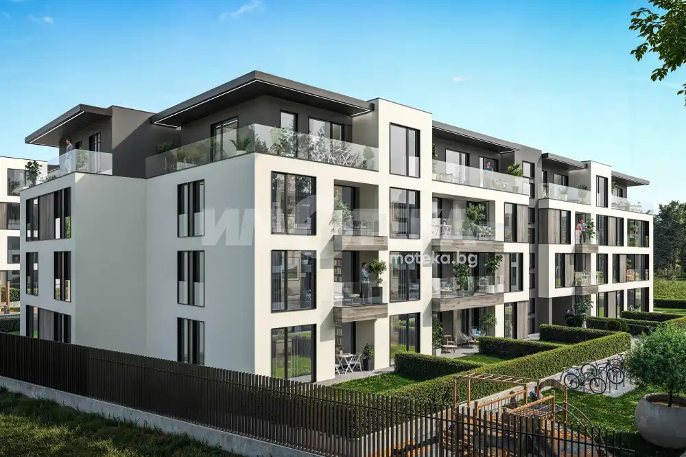 Просторен двустаен апартамент - 25 кв.м. дневна, 18 кв.м. спалня, дворче - 35 кв.м. Подземни паркоместа - 25 000€, подземни гаражи - 30 000€. Луксозен комплекс от три сгради, две подземни нива, красиво озеленен - модерна среда за активни хора.