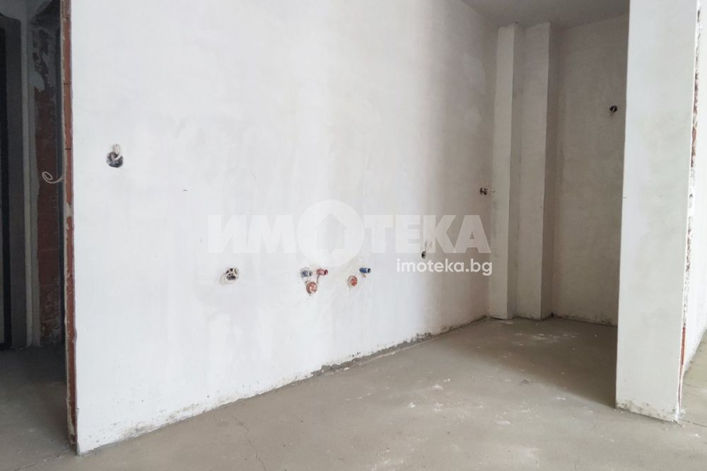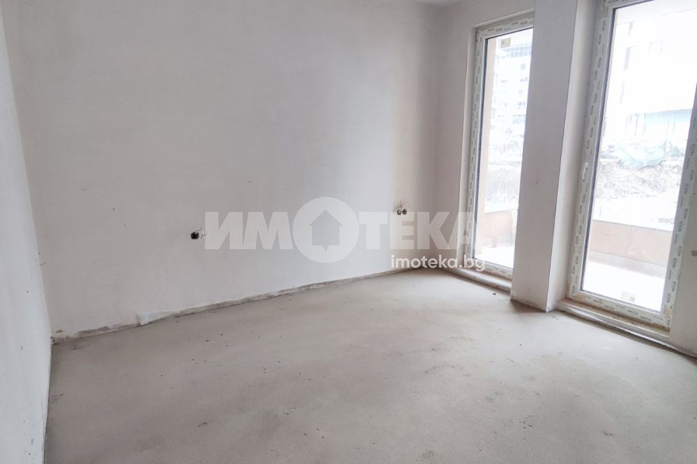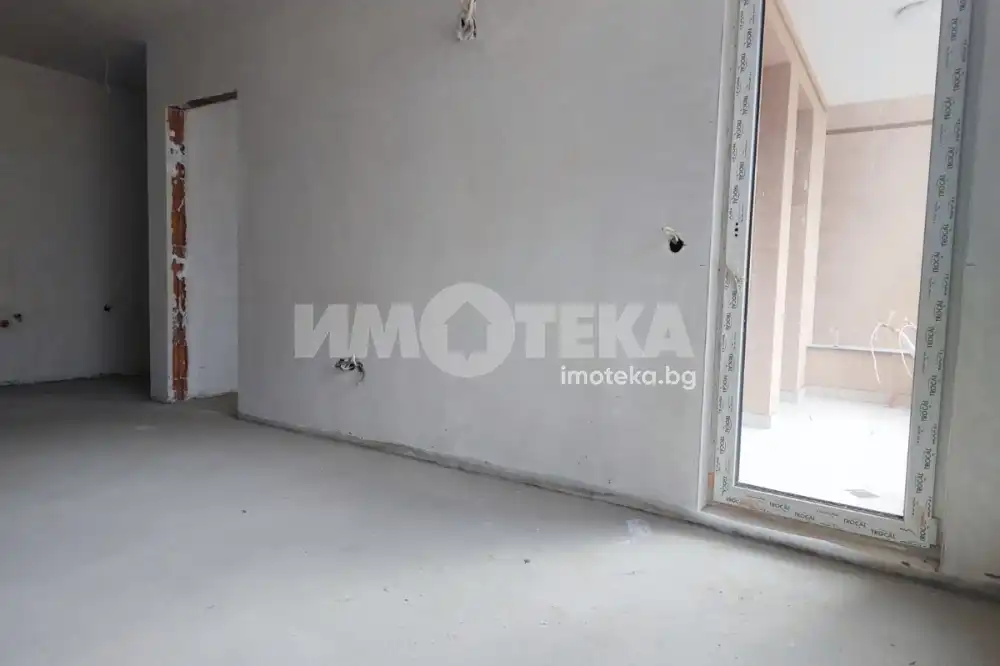 Двустаен апартамент 57 кв.м. на втори етаж над гаражи състоящ се от входно антре, баня с тоалетна, мокро помещение, всекидневна с кухненски бокс с излаз към тераса и спална с излаз към тераса. Жилището разполага с троен стъклопакет, отоплението ще е на ток има разводки за климатици.