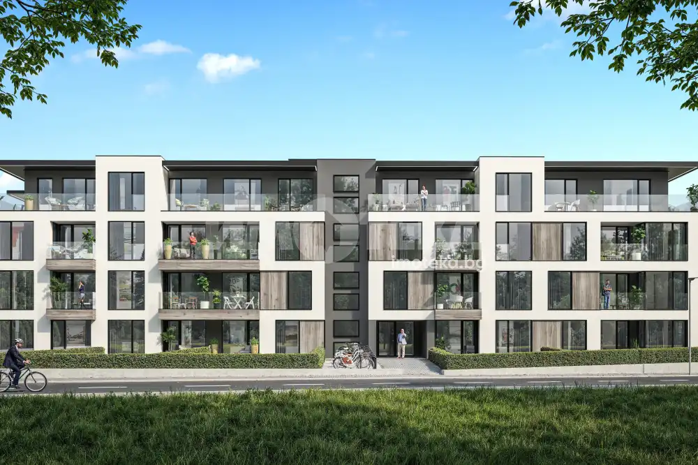 Еднопространствен апартамент с хубава панорамна тераса.. Луксозен комплекс от три сгради, две подземни нива, красиво озеленен - модерна среда за активни хора.
