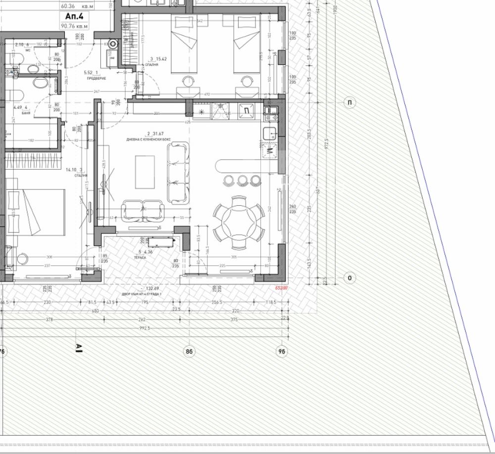 Просторен тристаен апартамент с двор. Луксозен комплекс от три сгради, две подземни нива, красиво озеленен - модерна среда за активни хора.