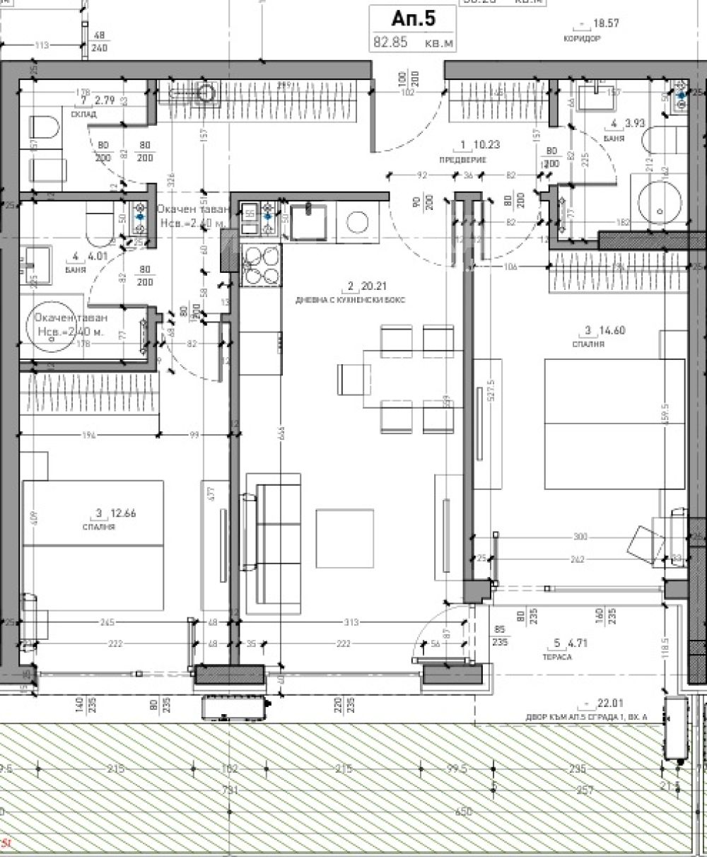Тристаен апартамент с южно изложение ЗП 83 кв.м+ 22 кв.м. озеленен двор.