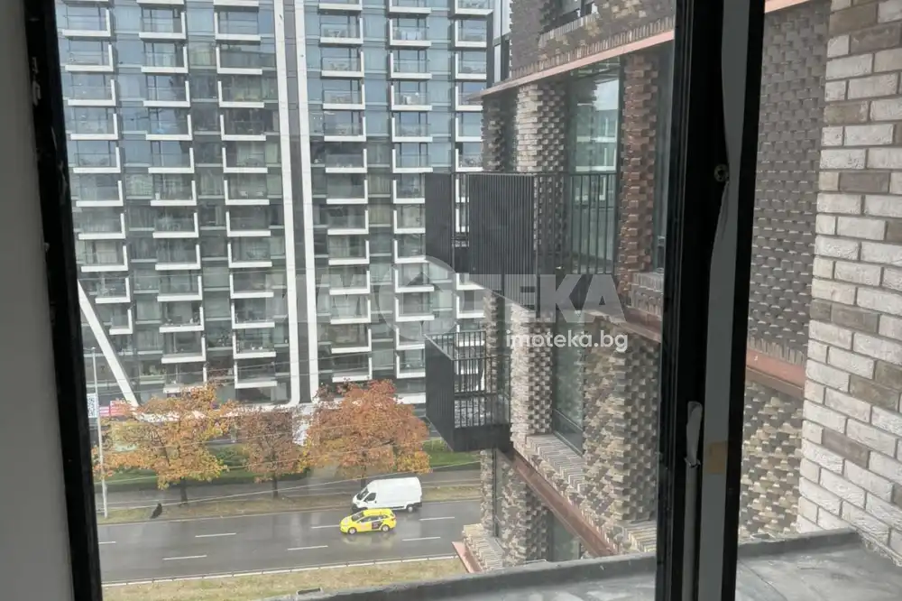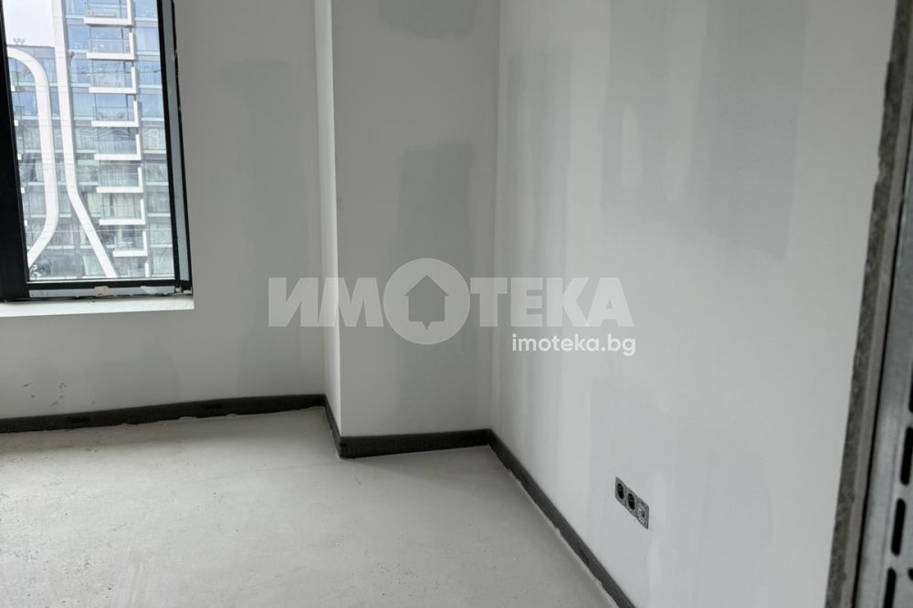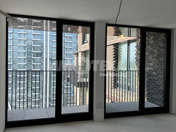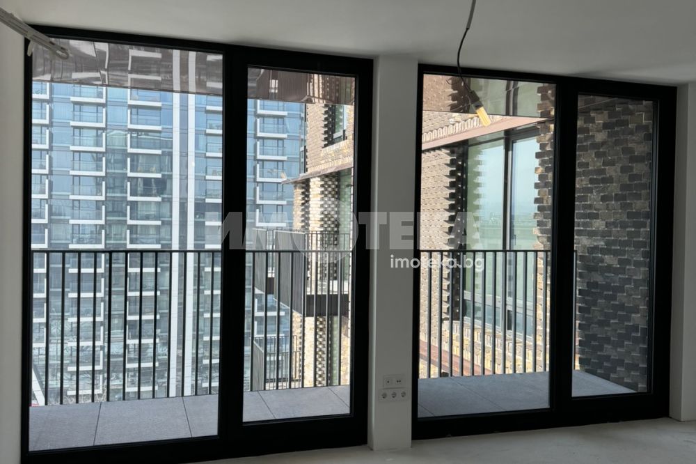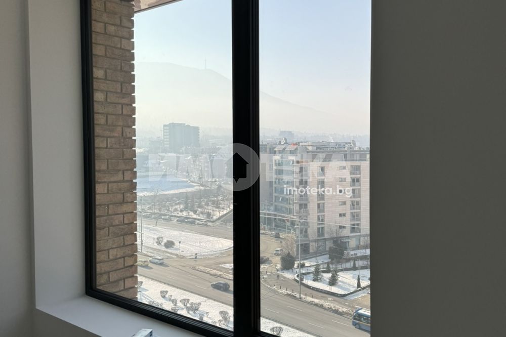 Двустаен апартамен в Манастирски ливади - изток. Предверие, дневна с кухня и трапезария с излаз на две тераси,, спалня, баня с тоалетна и мокро помещение. Просторни гледки към града и планината. Подово отопление на газ. Подземно паркомясто на отделна цена 50000 евро