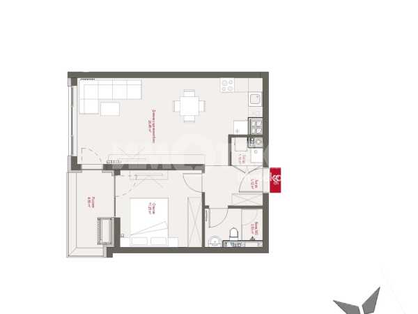 Двустаен апартамент разположен на втори етаж. Изложение Изток. Застроената площ на жилището е 62 кв.м., разпределени в антре, всекидневна с кухненски бокс и излаз към лоджия, от която се открива гледка към вътрешния двор на сградата, спалня, баня с тоалетна и склад.